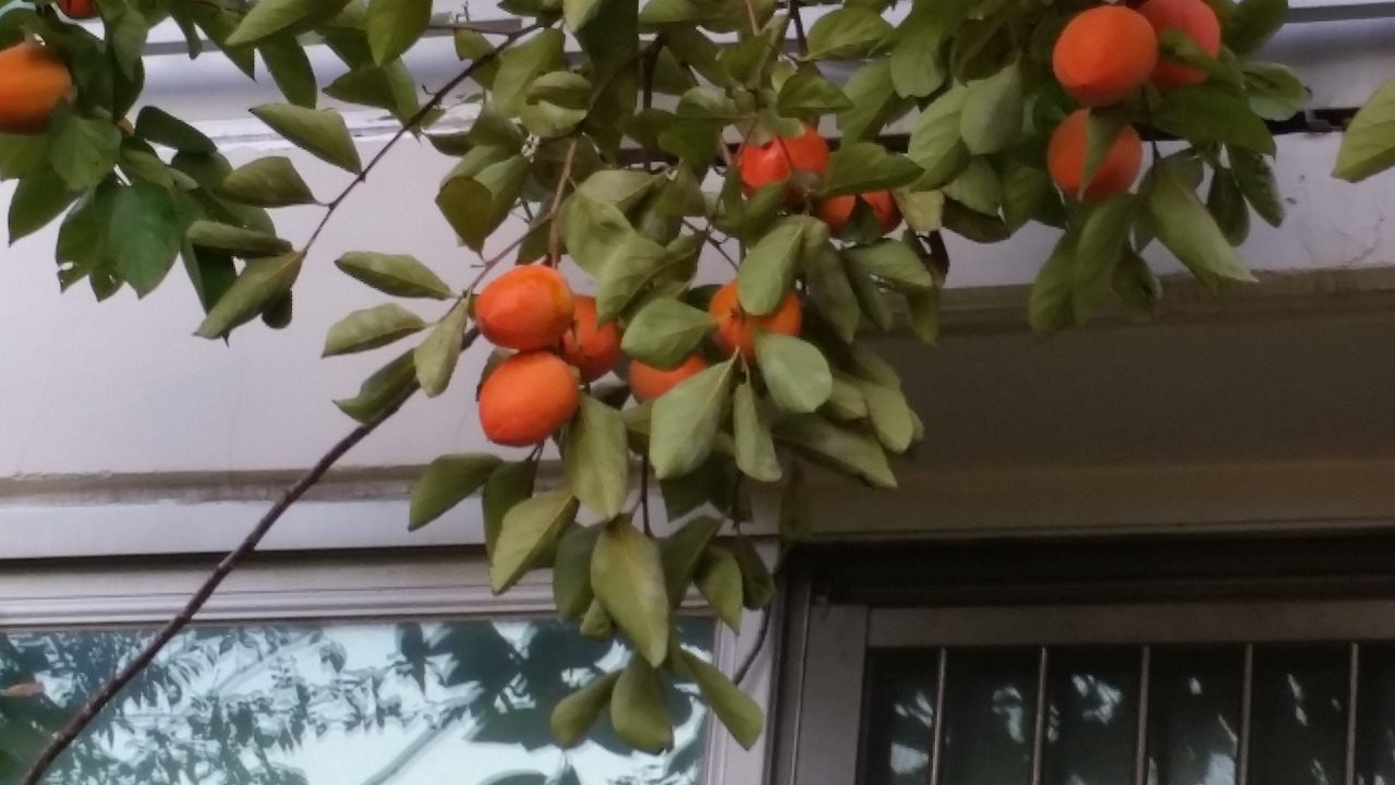 감은 살이 오를 대로 올라서 통통한 게 그냥도 보기 좋은데 점점 발그레 홍조를 띠기 시작하더니 요즘엔 나무에 온통 등불을 달아 놓은 듯 꽃으로 피어났다. 튼실한 감들이 주렁주렁 매달려 있는 걸 올려다보면서 산책을 하다 보면 어떤 때는 고개가 뻐근해지는 걸 알아채고 목 돌리기 운동을 한 적도 있다.