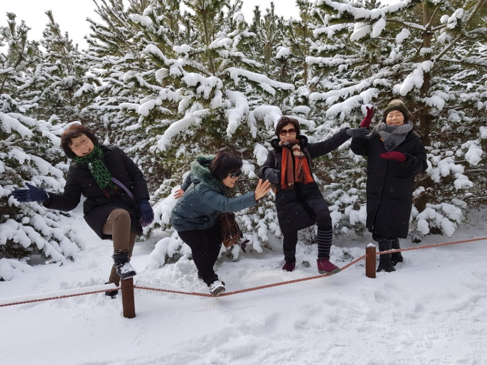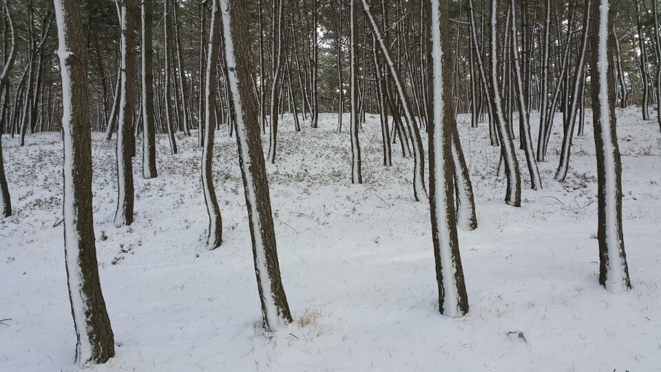차에서 밥도 먹고 차도 마시면서 동트는 아침을 보기도 하고 졸기도 하다 보니 어느덧 충청도에 이르렀다. 눈발이 끝발인지 심심하게 날린다. 가이드의 말로는 어제는 눈이 펑펑 쏟아져 고객들이 강아지처럼 뛰고 난리였단다. 생각지도 않게 버스는 안면도 솔밭 산책길로 우리를 안내했다.