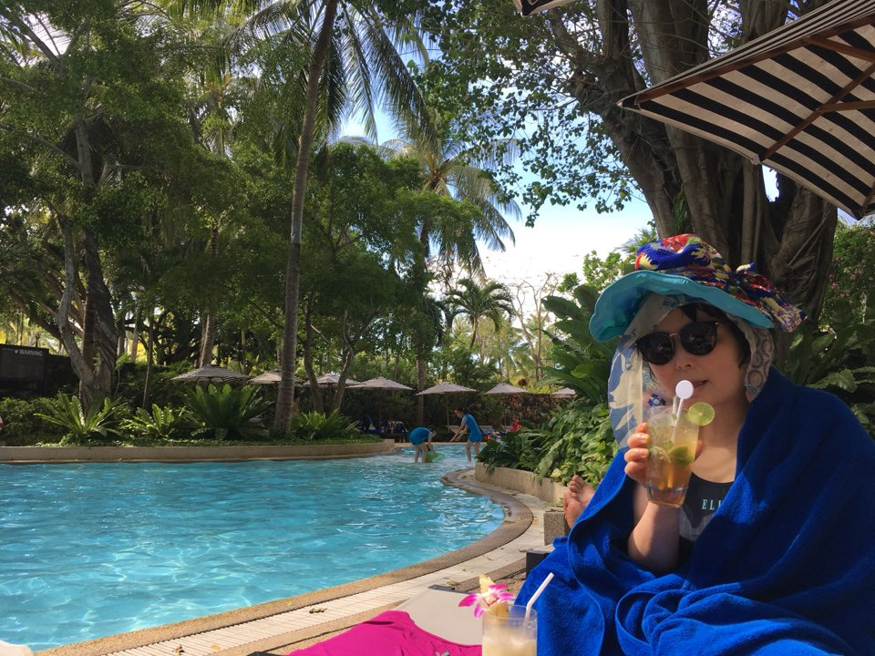 말끔해진 정신상태에서 수영장을 찾았다. 물속에서 수영놀이도 하고, 무등도 타고, 멋진 사진도 찍고, 음료도 시켜보고 하다가 장소를 옮겼다.