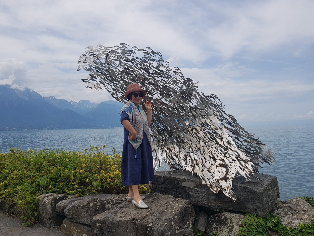 레만호에 가는 날 아침에는 특별히 원피스를 차려입었다. 왠지 근사해 보이고 싶어서였다. 이유인즉슨 아주 오래전 <레만호에 지다>라는 드라마에서 배우 정애리씨가 바바리코트를 입고 호수 저 끝을 바라보며, 깊은 생각에 빠져있는 모습을 보인 적이 있다. 그녀는 그때 한 공산당 간부 역을 맡고 있었다. 공산당이라면 무조건 오금이 저리던 시절이었는데도 그 모습이 너무나 고독해 보여서 공포스럽다기보다는 아름답기만 했다. 내가 언젠가는 저곳에 서 보리라 하고 마음만 먹었던 곳인데, 그게 현실이 되었으니 원피스 정도 차려입는 것은, 동경해왔던 한 장면에 대한 최소한의 예의 정도에 속하리라고 생각했나 보다. 스카프 하나를 더 해서 제 멋에 겨운 여행의 진수를 즐겼다.