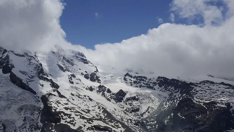 열차에서 내리자, 마테호른은 구름 치마를 입고 있어서 좀처럼 제 모습을 보이려들 질 않았다. 듣기로 아주 맑은 날에나 볼 수 있다고 했다.