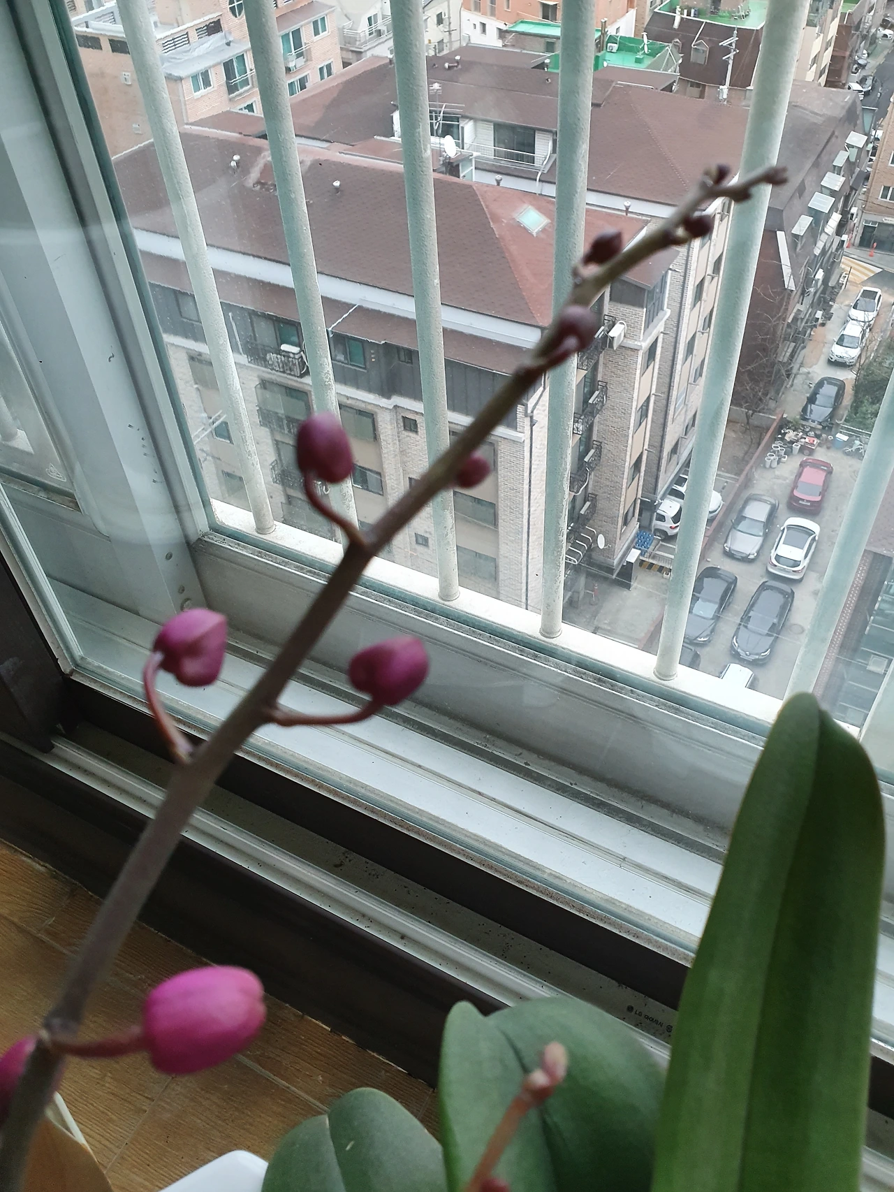 튤립이거니, 제라늄이거니, 군자란이거니, 덴드롱이거니, 거기다 아직 피려고 망울 가득한 호접란이거니 하는 애들이 아침을 지키고 있다. 최근에 꾸민 물고기 정원도 산소를 뽀글뽀글 뿜어내고 있어 뭔가가 끊임없이 움직이고 있음을 보여준다.