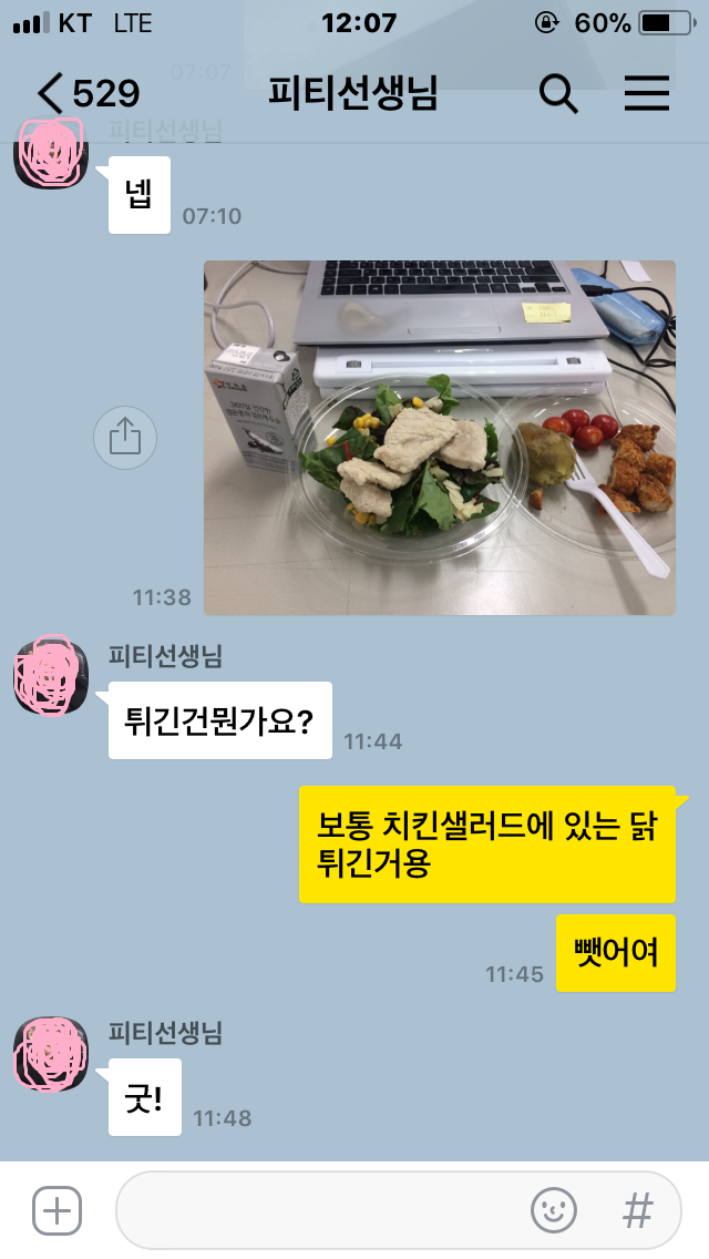 결과적으로 PT는 내게 정말 도움이 됐다. 처음 시작할 땐 1회 1시간 수업 치고는 비용이 비싸다고 생각했는데, 언제든지 내가 운동과 식단에 대해 물어보면 알려주고 또 관리해주는 비용까지 생각하니 그래도.. 그나마.... 납득이 됐다.