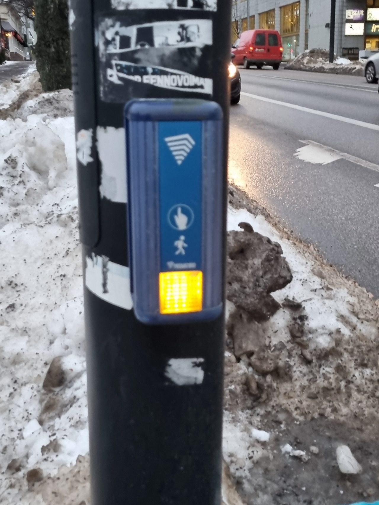 성당 앞 신호등. 핀란드의 신호등은 버튼을 누르라고 배웠다.