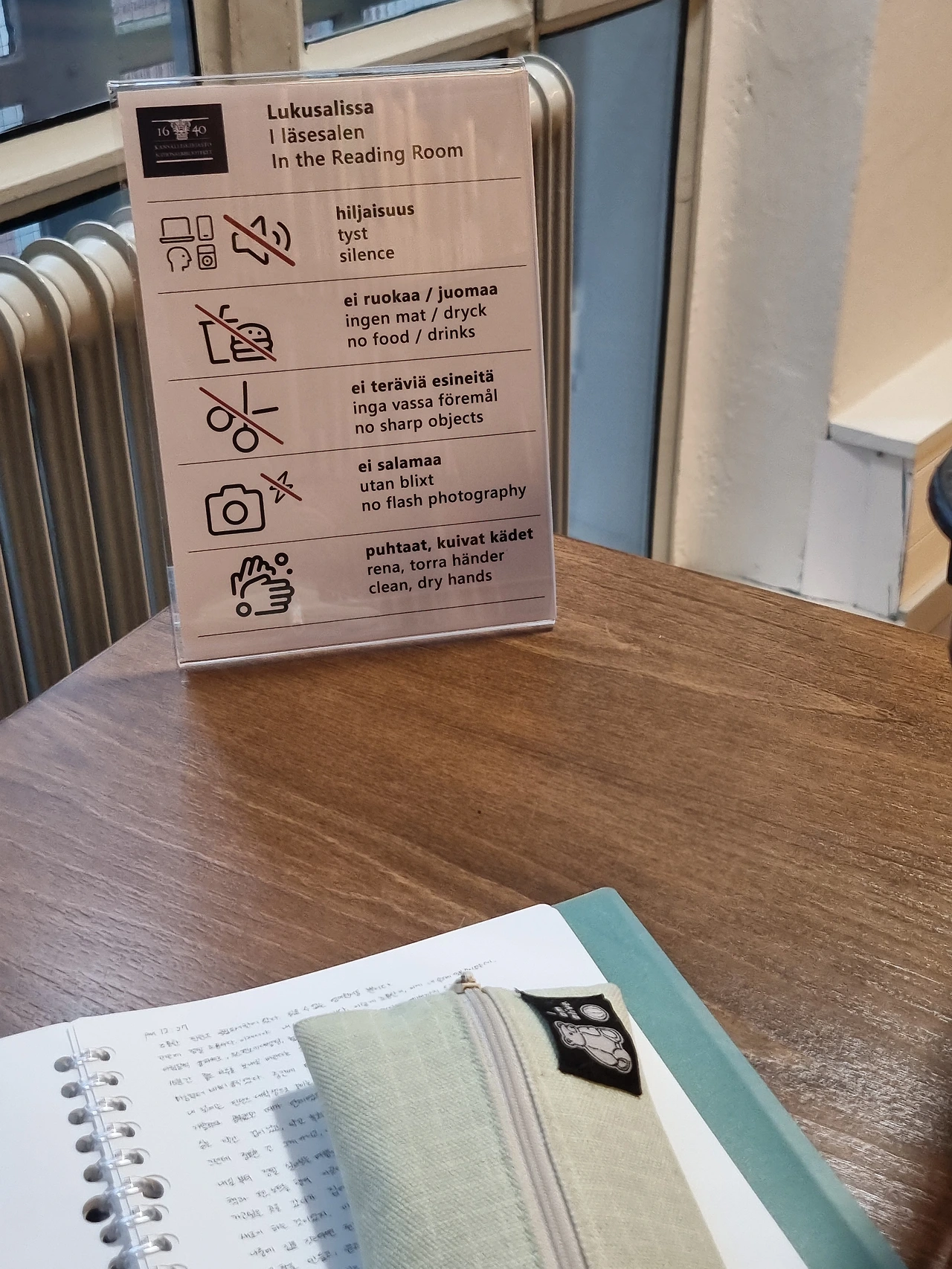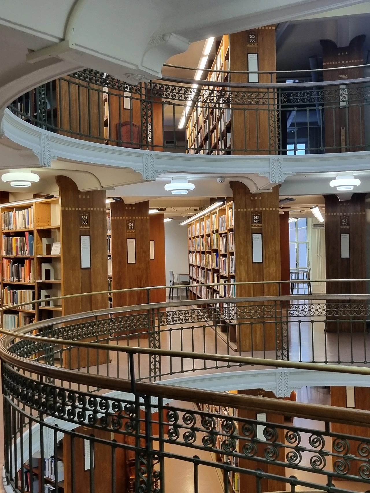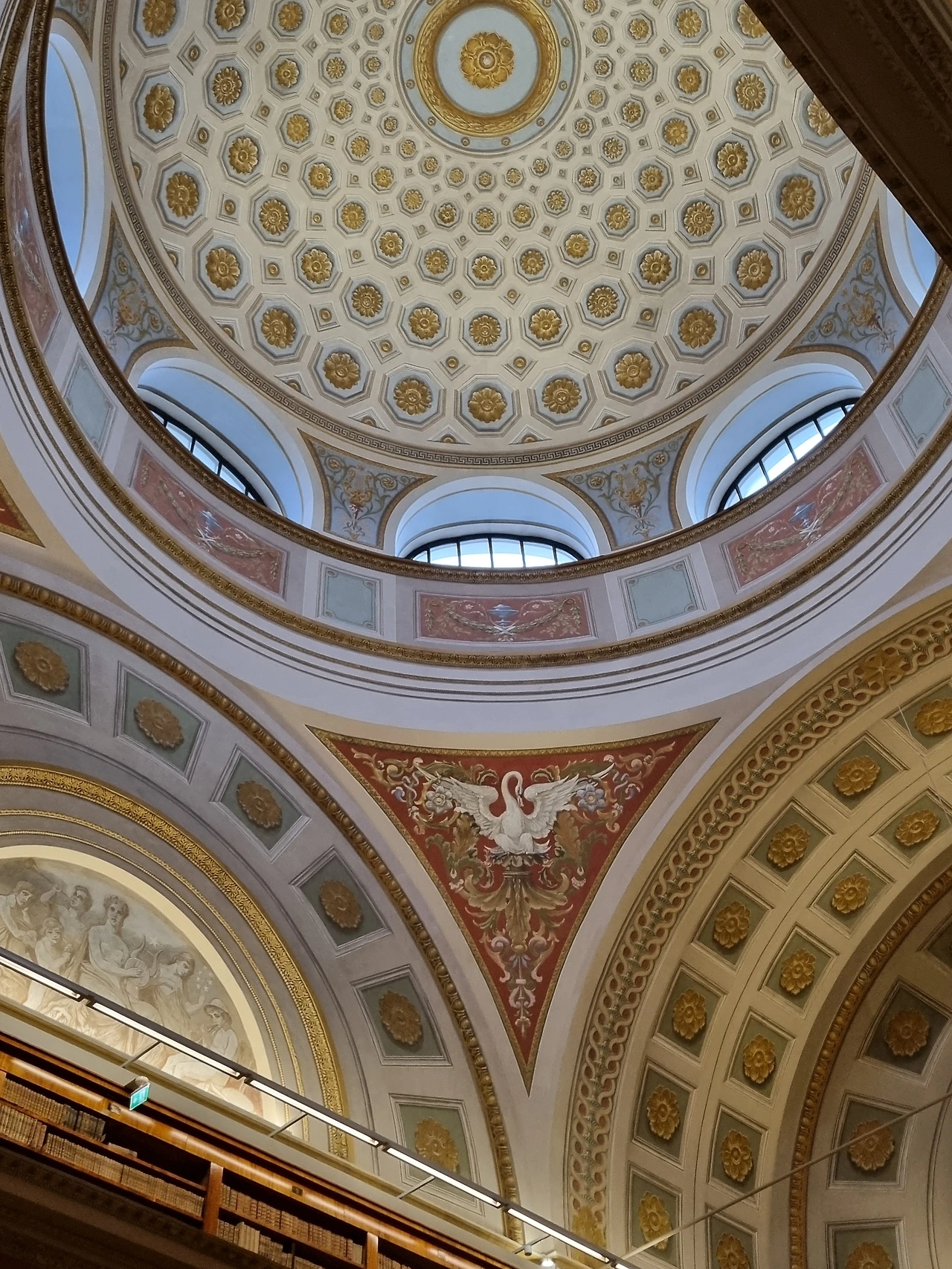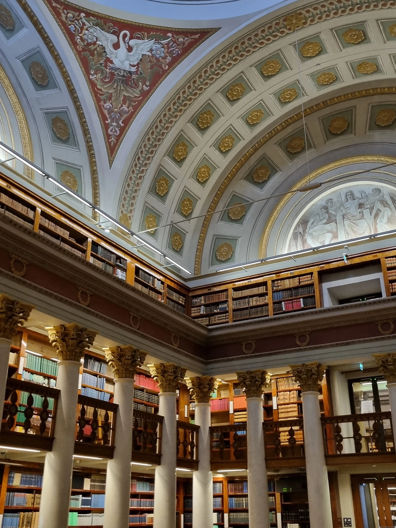 19세기에 지어진 도서관은 화려한 문양으로 그려진 머리 위 커다란 돔과 오래된 서적들로 분위기를 판타지로 만들었다. 그곳을 지나 익숙한 서가와 테이블이 있는 곳에 다이어리를 가지고 향한다.