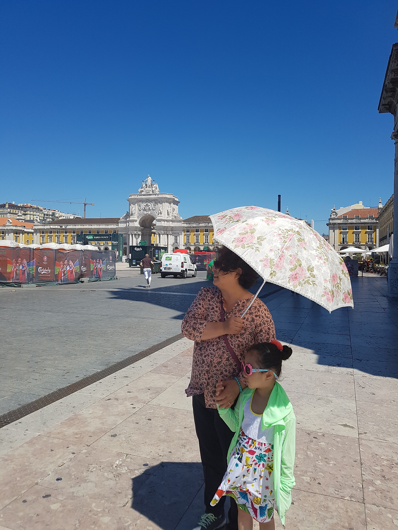 결국, 우려했던 것처럼 코메르 시우 광장에 도착해 엄마가 가장 먼저 했던 일은 양산을 펴는 일이었다. 광장을 지나는 대부분의 사람들처럼 사진을 찍는다던가 노천카페에 앉아 찬란한 햇살을 즐겨도 좋았을 텐데 엄마는 구태여 테주강이 훤히 펼쳐진 그 아름다운 광장 한가운데서 보란 듯이 당당하게 양산을 펼쳐 들었다.