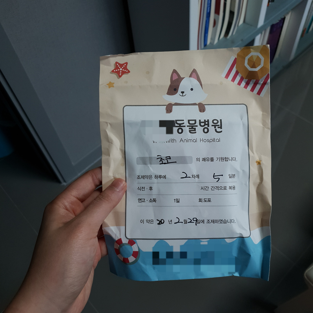 사람이랑 똑같은 약봉지다. 동물도 사람을 입양한다는 마음으로 해야한다. 와우...