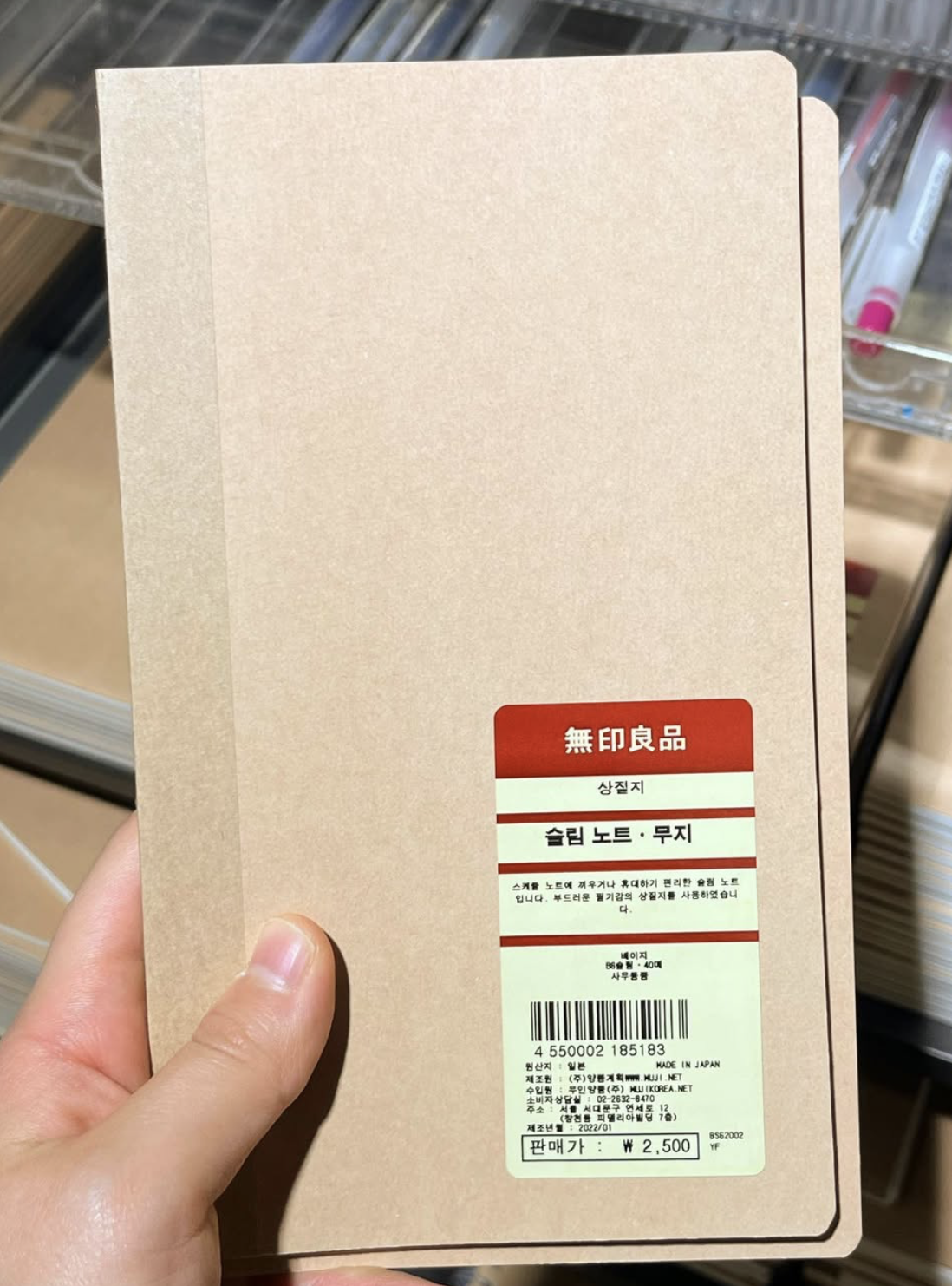 제품이야 당신이 원하는 걸 골라 사용할 수 있지만, 시작 전에 어떤 노트와 볼펜을 사용할지 고민된다면, 나는 무인양품 제품을 추천한다. 초기에는 이런저런 여러 노트를 사용해 보다가 결국 노트도 펜도 이것들에 정착했다. (광고 아님..)