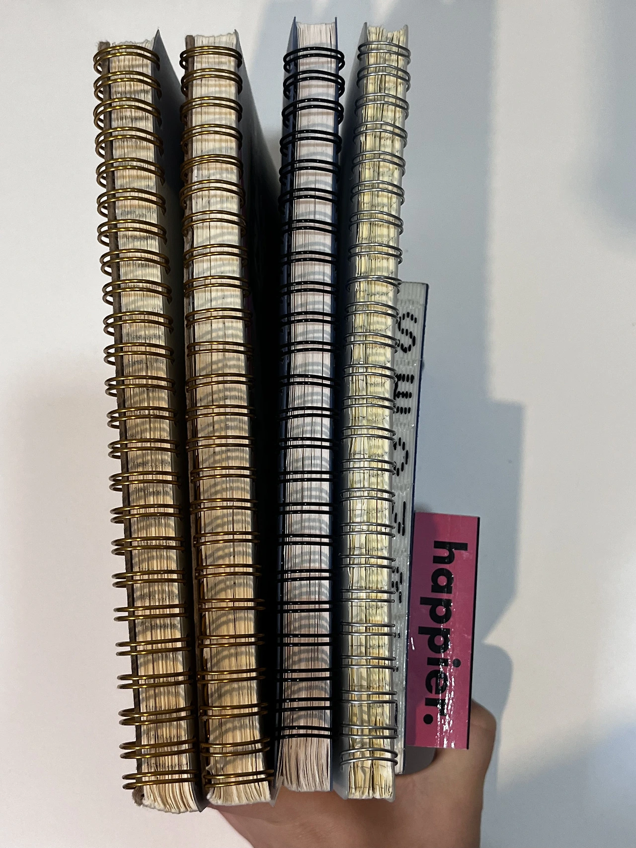 두껍지 않고 40 매라 부담스럽지 않다. B6사이즈라서 크지 않고 여기저기 넣어 다닐 수 있어서 휴대성이 좋다. 한창 사용할 때는 한 달에 한 권 정도씩 썼던 것 같다. 백화점 구경하는 겸 설렁설렁 가서 두세 권 사 오곤 했다. 미색이 약간 있는 무지 종이라서 보기에 편안하다.