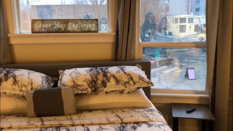 우리는 에어비앤비 개인실을 예약했다. 더블베드와 냉장고, 책상, 커피 포드가 하나 있는 방이었다. 화장실은 공용으로 사용하고 양 옆에 방을 끼고 있었는데 왼쪽 방은 어린 나이로 추정되는 동양계 미국인들이 묵고 있었다. 방에 도착한 우리는 지칠 대로 지쳤던지라 나갈 생각도 하지 못했다.