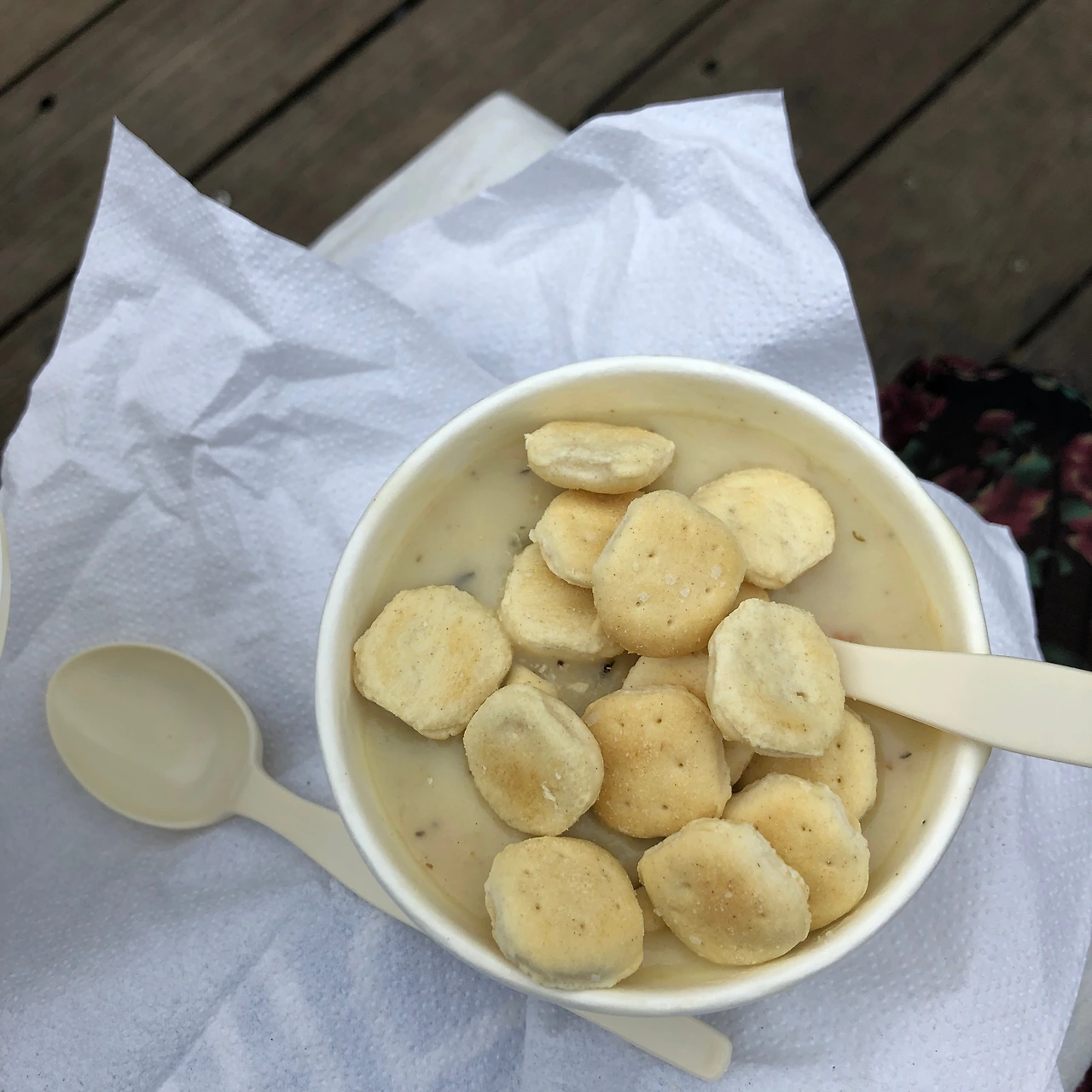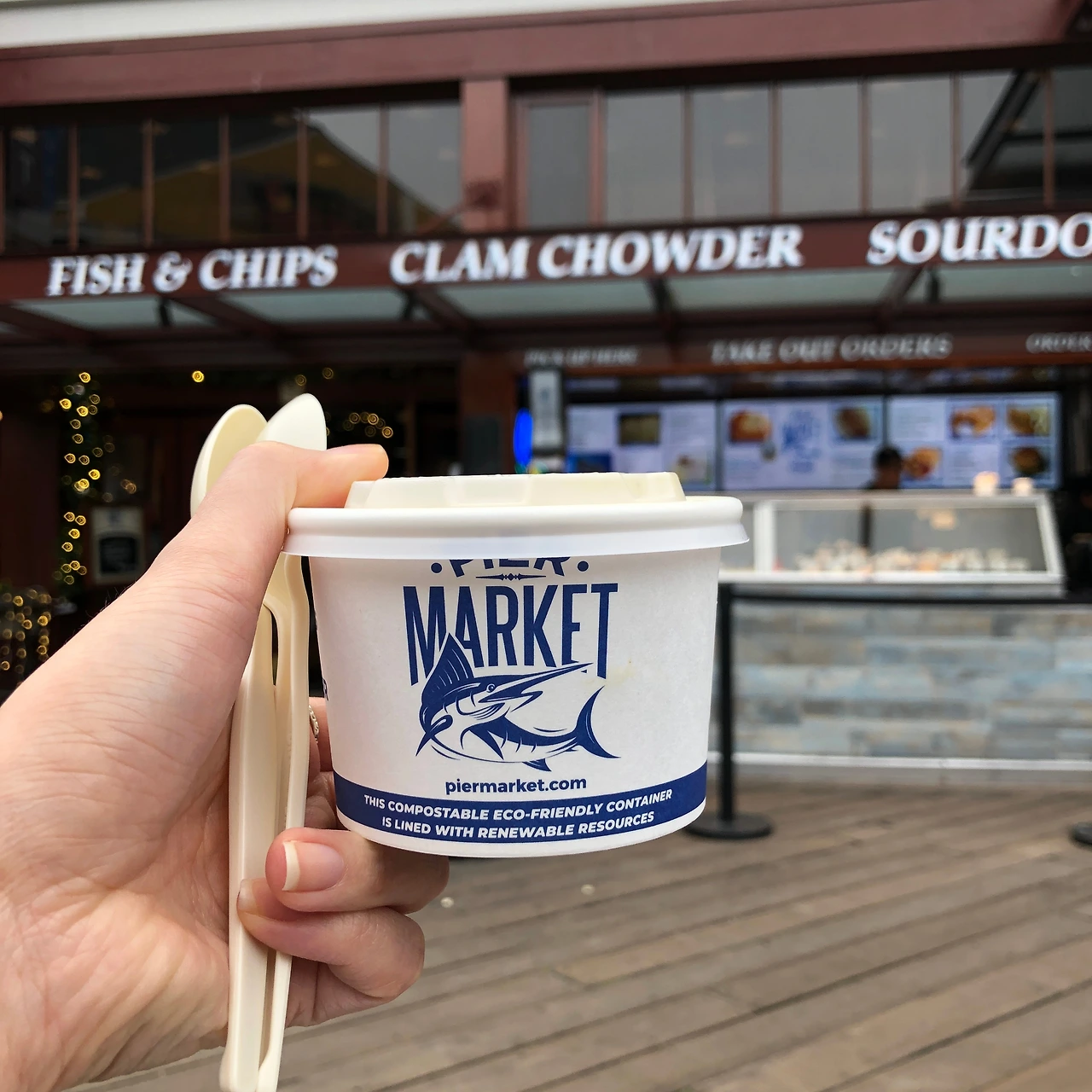 결국 바로 다음날 재방문한 피어 29에서 클램 차우더를 사 먹고 말았다. J에게 "클램 차우더 또 먹을래?".라고 물었다가 괜히 어제 먹지 그랬냐는 타박을 얻었다. 클램 차우더는 혼자 먹기에 많아 보여 좀 더 작은 크기의 $5짜리 미니 차우더를 주문했는데, J가 기념품샵을 구경하는 동안 혼자 벤치에 앉아 먹었다. 빵이 없는 대신 함께 받은 오이스터 크래커를 넣어 먹었다. 바삭한 크래커가 조금 있던 느끼함마저 잡아주는 것 같았다.
