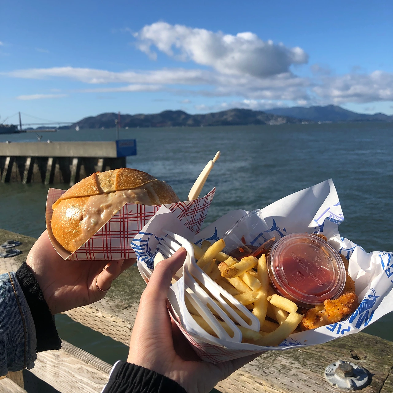 샌프란시스코 피어 29에는 유명한 클램 차우더 맛집들이 있다. 빠네처럼 속이 파인 빵 속에 수프를 담아 먹을 수 있었고, 'mini chower'를 주문하면 작은 종이컵에 받아먹을 수도 있었다. J는 피어 29에서 클램 차우더를 먹고 싶다고 했다. 나는 스프라는 말에 지레 겁먹어 J가 먹는 동안 오징어 튀김을 사 먹었다.
