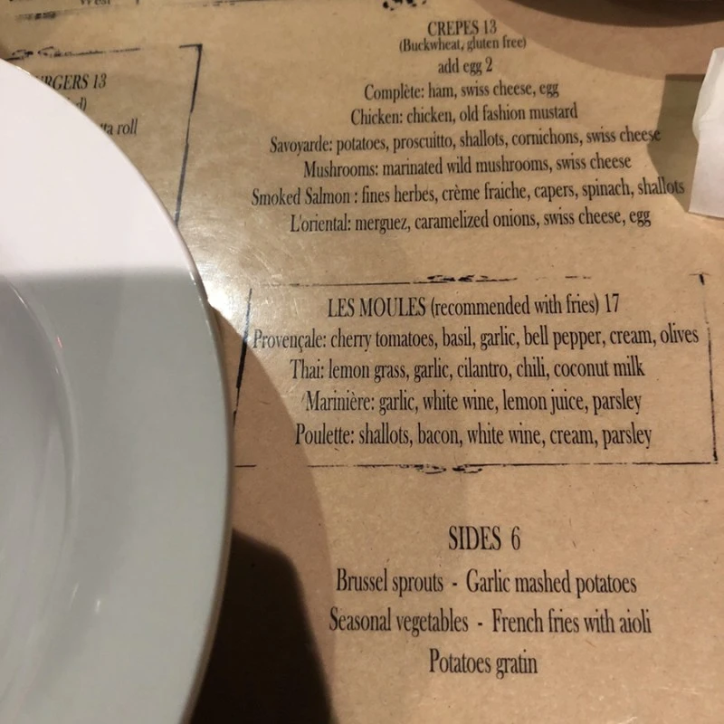 음식은 적당히 맛있었다. 둘이 오순도순 이야기를 하던 도중 맛있는 냄새가 나서 고개를 돌렸다. 정신 차리고 주위를 둘러보니 우리 테이블을 제외하고 모두가 홍합을 먹고 있었다. '나는 메뉴판에서 홍합을 못 봤는데?' 하고 억울해하던 찰나 내가 홍합이 영어로 뭔지 모른다는 것이 생각이 났다. 향이 어찌나 좋던지 저걸 먹으러 다시 와야겠다는 생각을 했다. 이후에 알아봤더니 그곳은 현지인들 사이에서 꽤 유명한 프렌치 레스토랑이었고 프랑스식 홍합탕과 에스까르고가 인기 메뉴였다. 향이 어찌나 달콤하던지 결국 샌프란 마지막 날에 혼자 재방문해서 홍합을 먹고야 말았다.