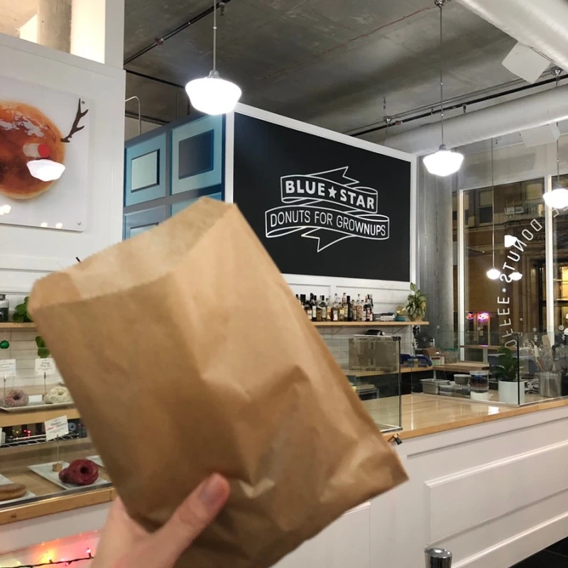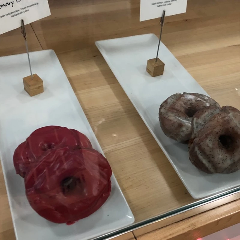 포틀랜드에서 유명한 도넛 가게는 두 곳이 있다. 부두 도넛과 블루스타 도넛이다. 부두 도넛에 키치하고 빈티지한 도넛들이 있다면, 블루스타 도넛엔 세련되고 깔끔한 도넛들이 있다. 블루스타 도넛은 부두 도넛보다 두배나 비쌌다. 여행 온 것이 아니었다면 사 먹지 않았을 가격이었다. 실패하기 싫었던 나는 라즈베리 도넛을, 도전해보고 싶었던 J는 베이컨 도넛을 구입했다. J의 용감한 도전이었다. 블루스타 도넛은 단단한 케익같은 식감이었다.