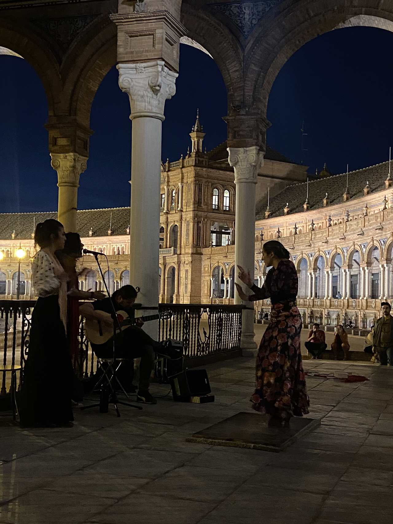 세비야에서 유명한 게 투우하고 플라멩코 공연인데, 보통은 돈을 내고 보지만 스페인 광장에서 버스킹을 볼 수도 있다고 한다. 물론 투우 말고 플라멩코 공연이다. 우리는 그들의 예술 정신에 운을 맡기기로 했다. 어디서든 버스킹을 하는 스페인의 열정을 따라서. 다행히도 플라멩코 공연을 눈앞에서 직관했다. 화려한 옷과 소리와 노래와 분위기가 압도적이었다. 언젠가 훌라를 배우고 싶었는데 플라멩코도 추가해야 하나.