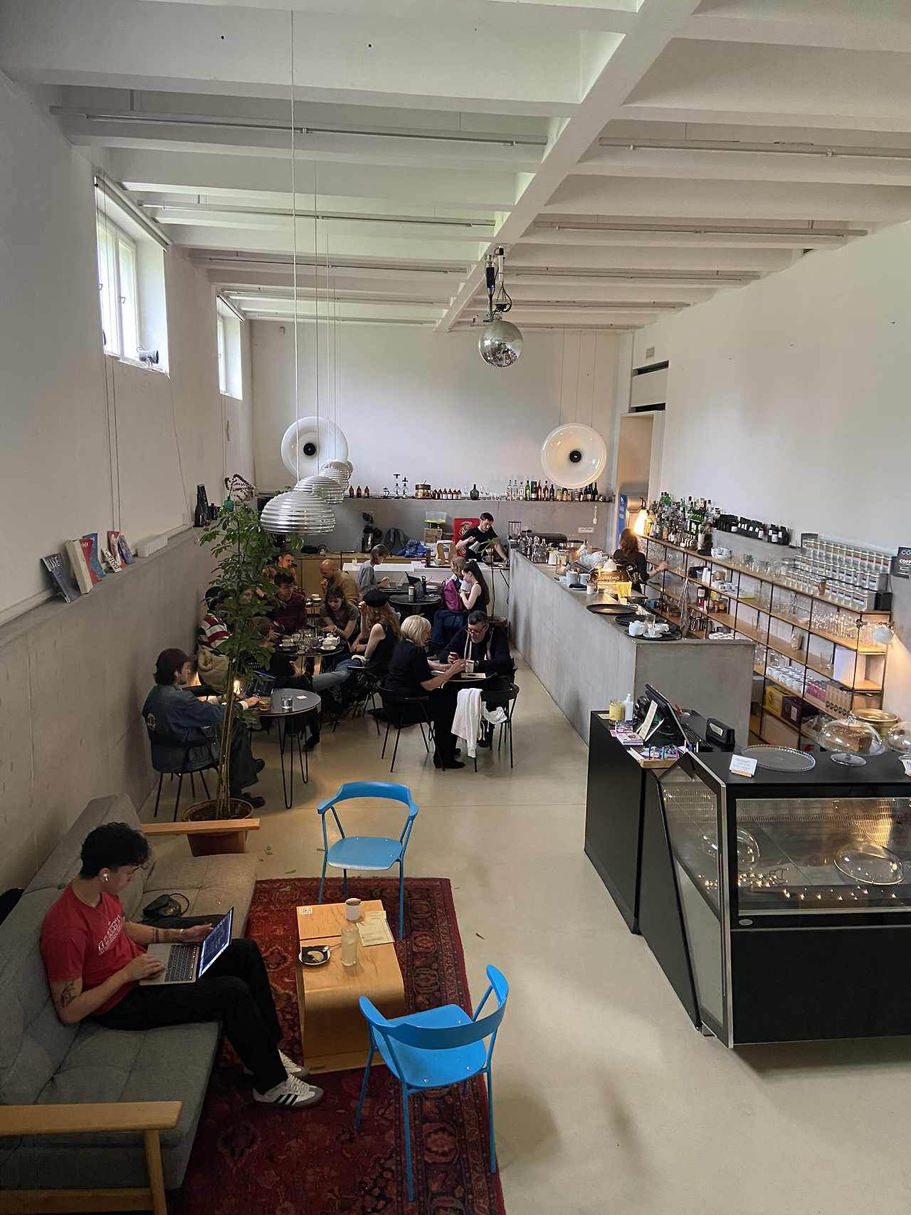 휴일에도 문을 여는 카페가 있긴 했습니다. 저는 글을 쓰고 읽으며 쉬고 싶어서 카공을 계획했어요. 아마 류블랴나 젊은이들은 다 이곳에 와있는 것 같았습니다. 근처에 대학교가 있어서 그런지 학생들이 더 많아 보였어요. 국립미술관 지하에 있는 카페였는데 그래서 더 운치가 있었어요. 비 오는 날이라 꽤 습했는데도 이곳은 쾌적했습니다. 뭐라도 꺼내서 더 오래 앉아있고 싶은 느낌이 드는 카페였어요. 이 공간에 오자마자 정말 카페를 잘 찾았다는 생각이 들었어요. 맛보다도 공간에 폭 빠졌던 곳입니다.
