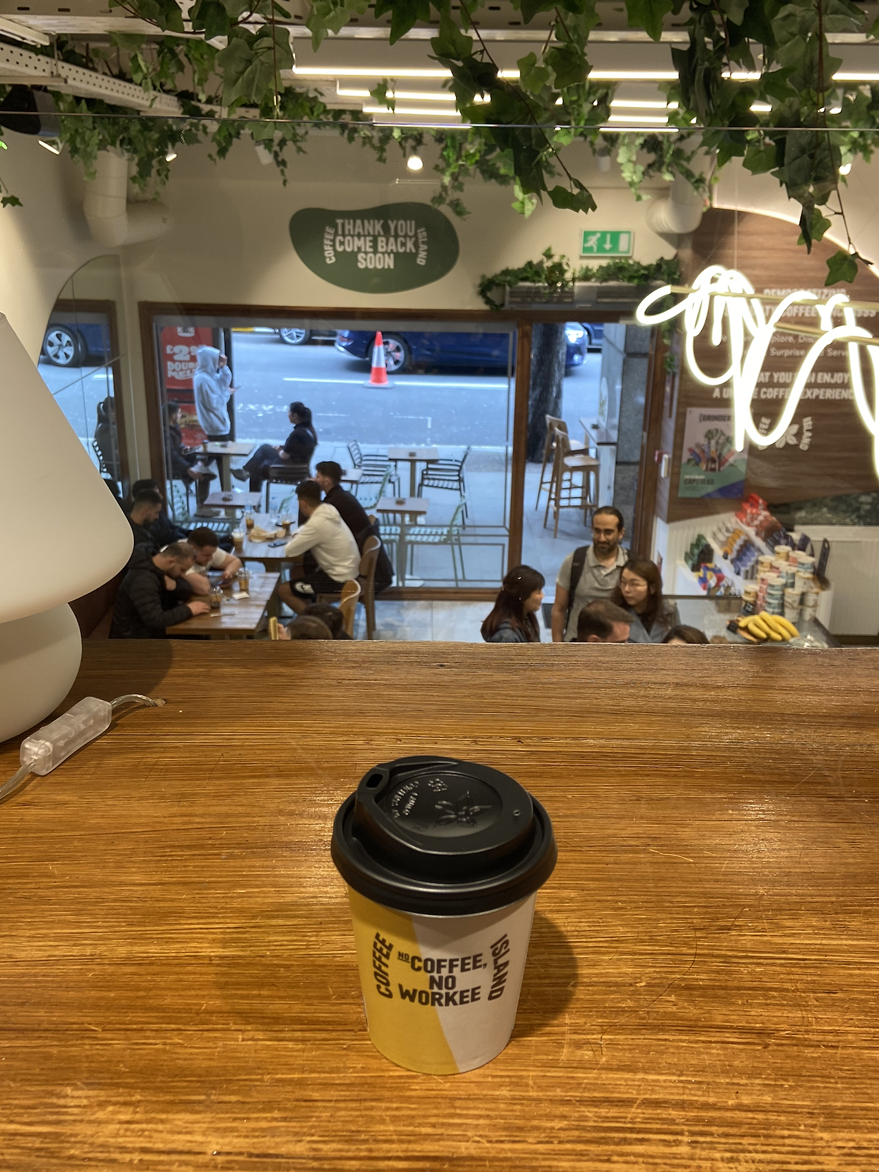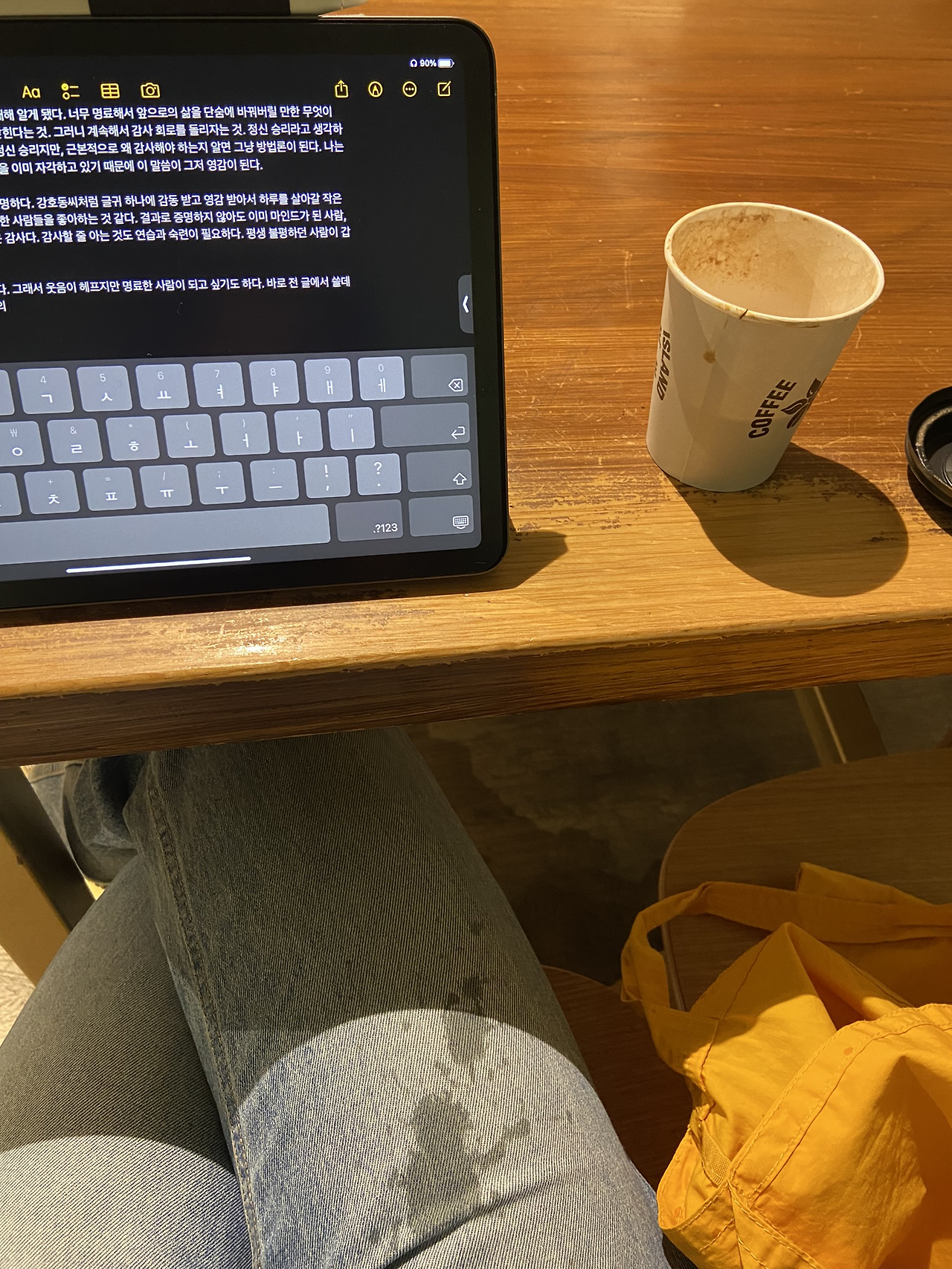 런던에서의 마지막 날, 거의 처음으로 삼단분리 되었어요. 저는 글 쓰러 카페로, 한 명은 내셔널 갤러리로, 한 명은 축구 유니폼을 사기 위해 흩어졌습니다. 런던의 주말은 아주 붐비는 서울 같더라고요. 카페에도 자리가 없었어요. 사람 없는 동유럽에서는 경험할 수 없던 분주함이었습니다. 이 카페는 평범했지만 되게 더웠어요. 공기가 답답했달까요. 숙소도 환기가 정말 중요한 사람으로서 고통스러웠어요. 복층 구조였는데 위층에는 거의 공부하는 사람들이었거든요. 저 역시 한 자리 차지하고 글을 썼는데, 중간쯤에 허벅지에 커피를 쏟았지 뭐예요. 별로 화가 나지는 않았습니다. 그런데 커피 흘린 걸 까먹고 며칠 동안 바지를 그대로 입고 다니긴 했어요. 어쩐지 카페도 저도 조금은 모자란 느낌이네요.