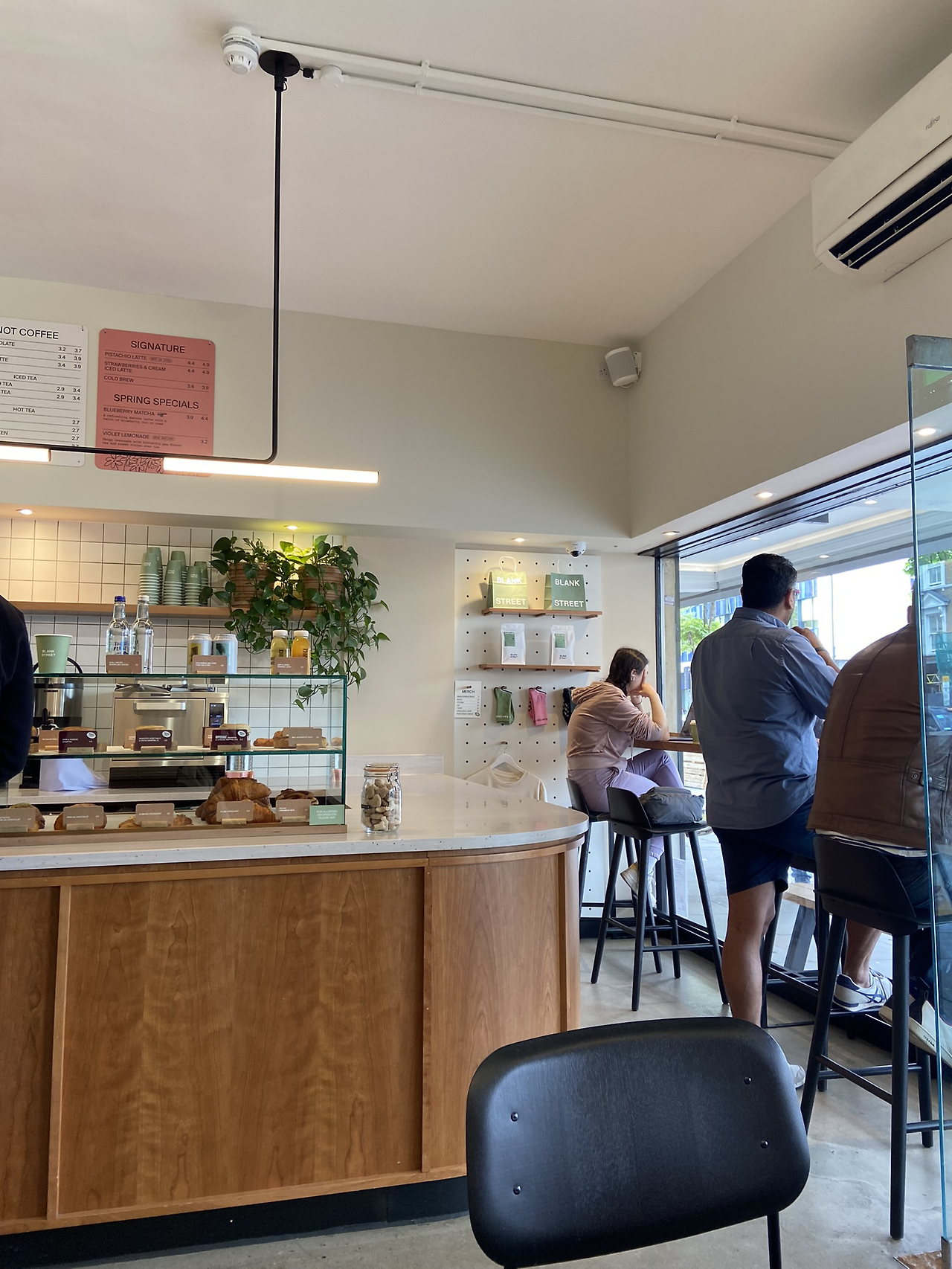 블랭크 스트리트, 사실 롱블랙이라는 뉴스레터 플랫폼에서 봤던 카페였는데요. 먹을 때까지는 생각도 못하고 있다가 나중에 찍은 사진을 보면서 깨달았어요. 한번 가보고 싶다고 생각했던 곳이었거든요. 유명한 체인점이라는 걸 모르고 괜찮은 라떼 사진만 보고 갔습니다. 내부는 크지 않았는데, 블랭크 스트리트 자체가 작은 공간에서 적당히 맛있는 커피를 파는 컨셉이라고 하더라고요. 자투리 공간들을 활용한다고 해요. 아마도 제가 갔던 곳은 큰 편이었나 봐요.