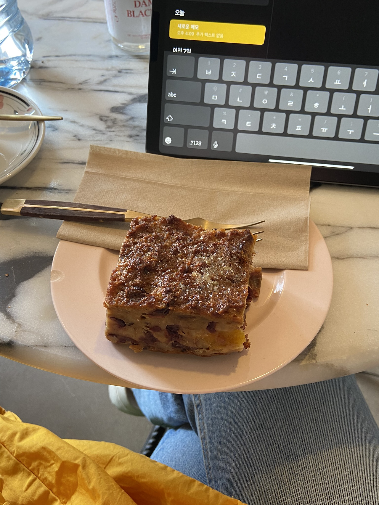 그러나 아쉽게도 제가 갔던 카페 중에 가장 집중이 안 됐던 곳이었어요. 제 옆자리에서는 사장님이 회계 장부를 정리하는 것 같았고, 딸은 계속 떼를 쓰고, 직원들은 일을 하다가 사장님과 이야기를 했거든요. 애써 변압기를 연결한 충전기를 꽂고 헤드셋을 썼습니다. 글을 조금 쓰기는 했던 것 같은데요. 기억에 남게 마음이 분주했던 시간이었어요. 중간에 배가 고파져서 바나나 브레드 푸딩을 하나 먹었어요. 알고 보니 디저트 맛집은 아니더라고요. 그래도 플랫 화이트는 고소하니 맛있어서 좋았어요. 영국 빵은 어째서인지 다들 크기가 커서 반 정도 남기고 포장해서 나왔습니다. 친구에게 먹어보라고 했는데 두 입 먹고 말았던 것 같아요. 그럼에도 캠브리지에만 있는 카페에 가볼 수 있어서 기뻤어요.