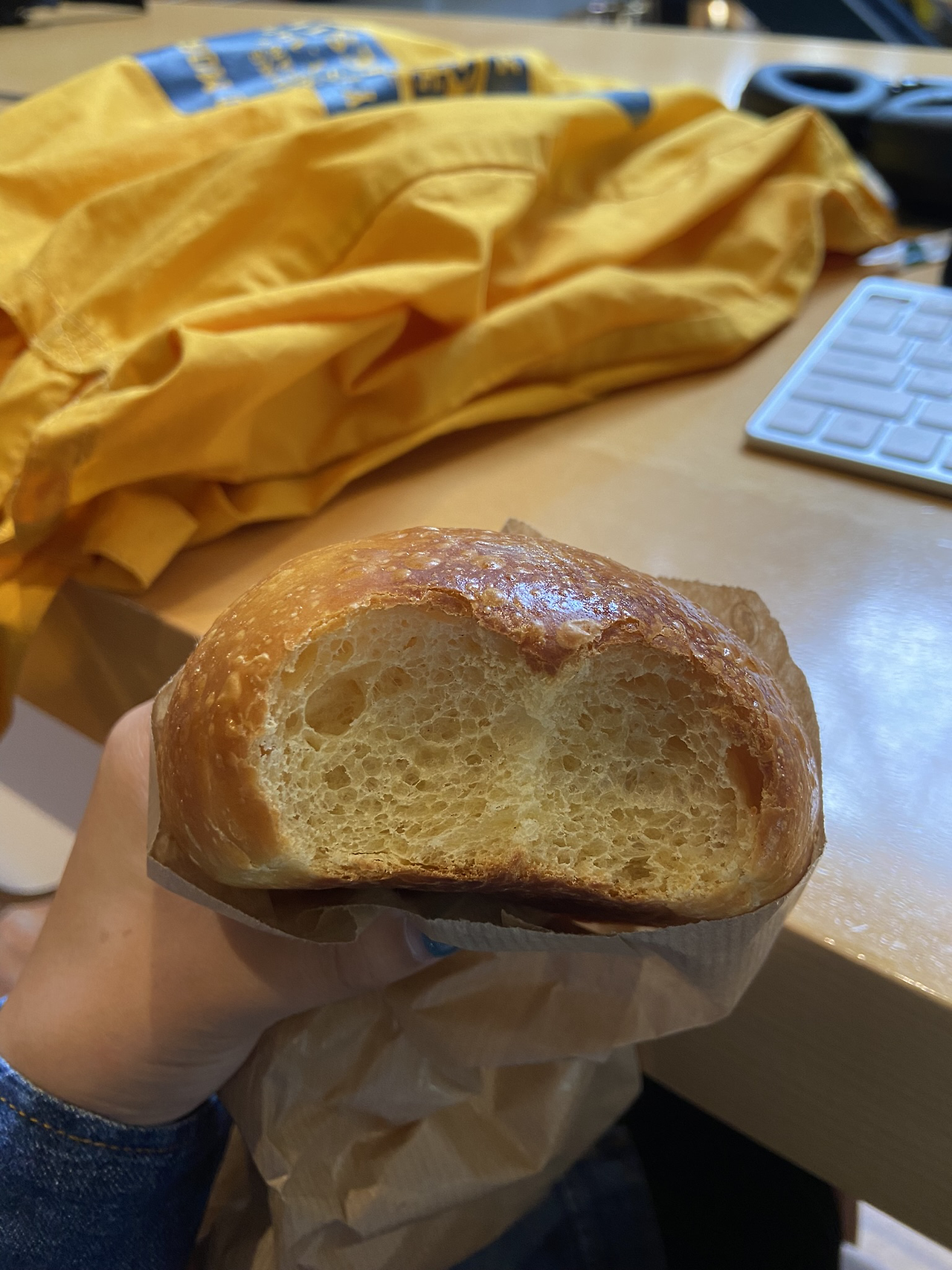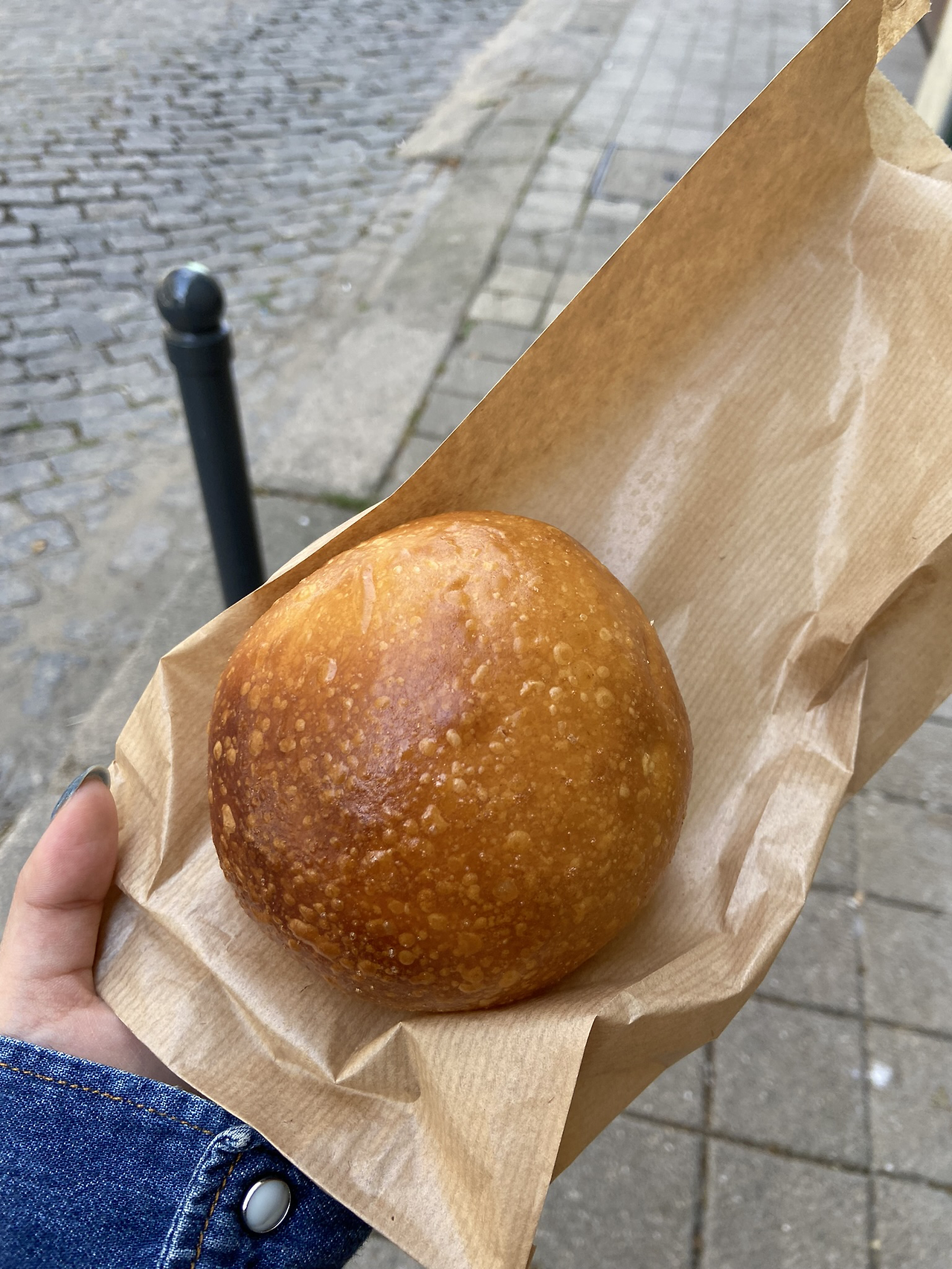 다시 빵으로 넘어와서, 이건 브리오슈라는 빵입니다. 스타벅스를 찾아가다가 냄새를 맡고 들어가 본 곳인데요. 저도 빵에서만큼은 즉흥이 허용되는 것 같아요. 길거리에서 투명한 유리창으로 제빵사들의 모습이 보였어요. 하얀 유니폼을 입은 그들이 너무 믿음직스러웠는데요. 빵들도 되게 소담하고 클래식한 종류들이 많았어요. 봉긋한 모양의 빵들은 모두 브리오슈라고 했는데요. 그중에 가장 기본인 녀석으로 하나 구매해 봤어요. 엄청 촉촉하지도 않고 퍽퍽하지도 않은 중간쯤의 식감이었는데, 살짝 새콤한 맛도 났어요. 먹어보니 특별하진 않았지만, 너무 탐스러워 보여서 사지 않을 수 없었어요.