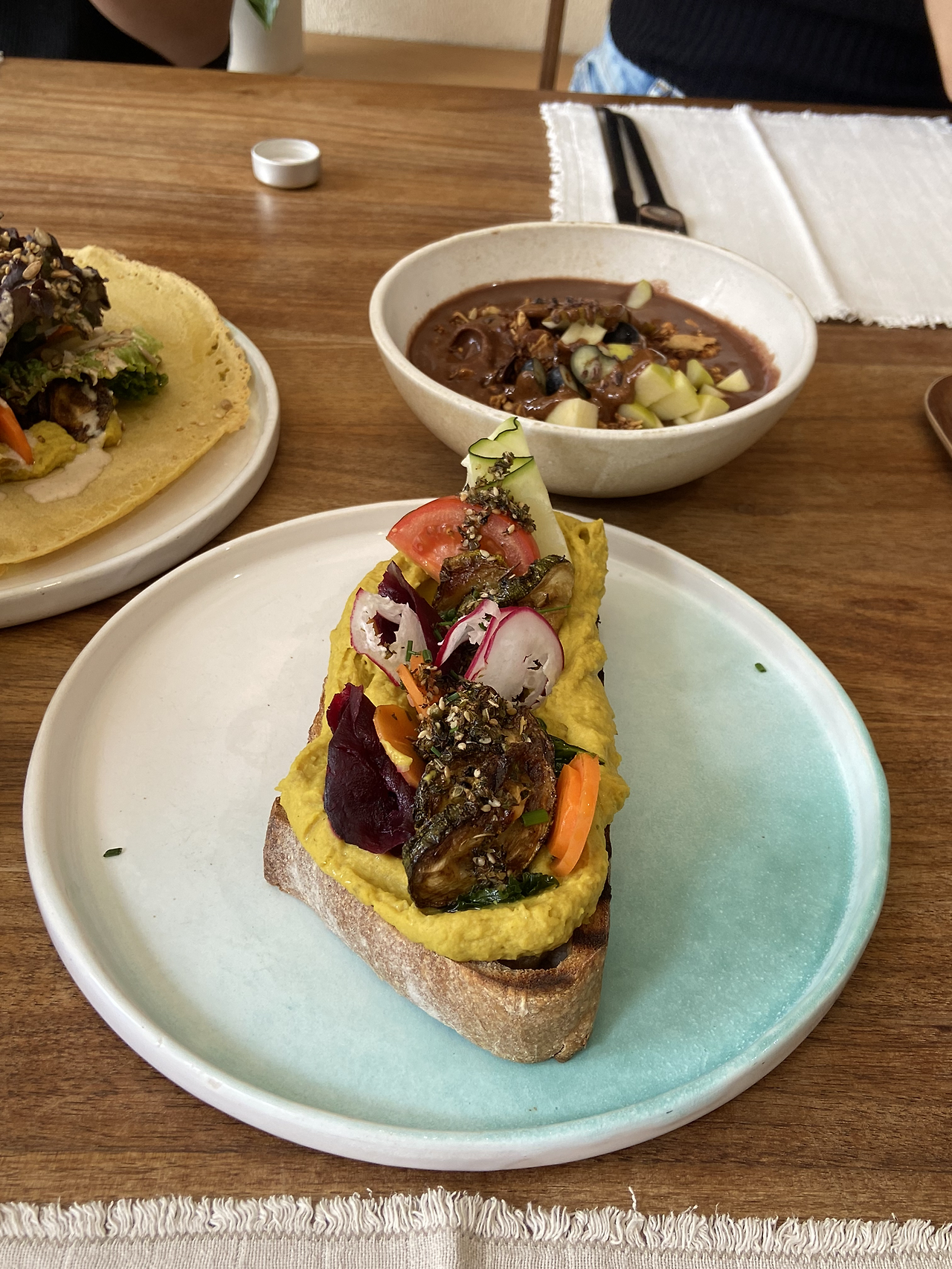 요가원과 비건 식당을 같이 하는 집이 있더라고요. 콘셉트가 너무 독특하고 정서가 마음에 들어서 숙소 동행들과 함께 왔어요. 제대로 된 비건 음식점은 처음이라 되게 신기했는데, 사람이 진짜 많더라구요. 음식에 들어가는 재료는 거의 비슷했는데요. 호박 퓨레 같은 걸 많이 쓰고, 김치도 있더라고요. 감칠맛을 주기 위해서일까요. 샌드위치가 너무 아름다워서 먹기 아까웠지만, 4명이 나눠먹으려면 산산조각을 내야 했습니다. 네 명 중 두 명은 커피에 미쳐있고, 두 명은 커피를 마시지 않았어요. 게다가 저를 제외한 세 명이 모두 선생님이더라고요. 비슷한 것도 다른 것도 너무 많은 사람들의 모임이었달까요.