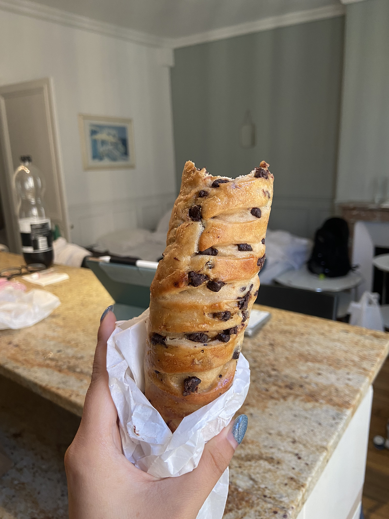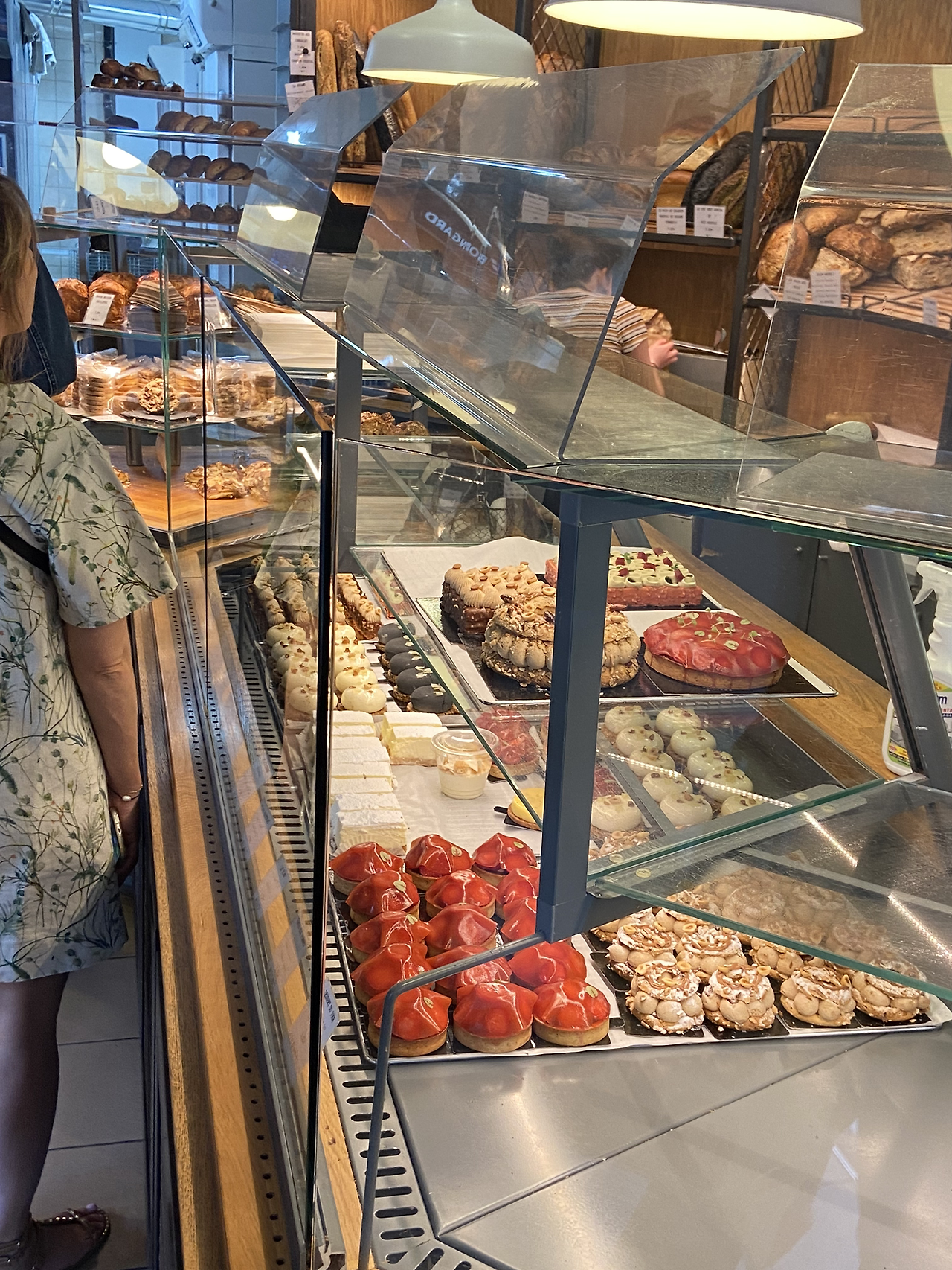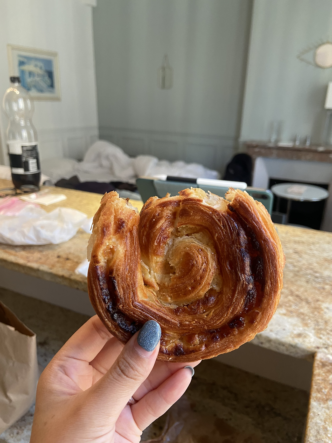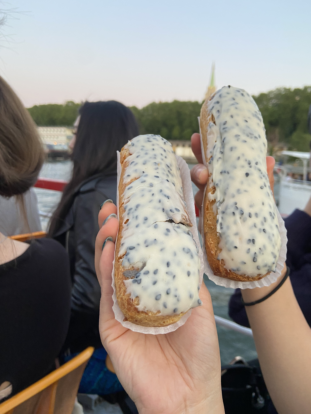 약 4일간 파리에 머무르면서 유명한 빵집들을 매일 찾아다녔어요. 이 날은 친구들이 식당 웨이팅을 하는 동안 혼자서 빵집을 두 개 돌고 왔습니다. 모두 저의 의지였는데요. 딱히 어떤 빵을 먹고 싶어서 간 건 아니었지만 그래도 유명한 녀석들을 데려오기는 했습니다. 각각 바닐라슈와 흑임자 에끌레어가 유명하다고 들었는데요. 슈는 크림이 없는 껍데기뿐이었고, 에끌레어는 한국에서 먹어본 듯한 흑임자 크림의 패스츄리 같았습니다. 특별한 맛은 아니라서 특별히 기억에 남지는 않네요. 다만 꽤 더운 여름의 파리 길바닥을 열심히 쏘다니던 제 열정은 선명히 기억해요.