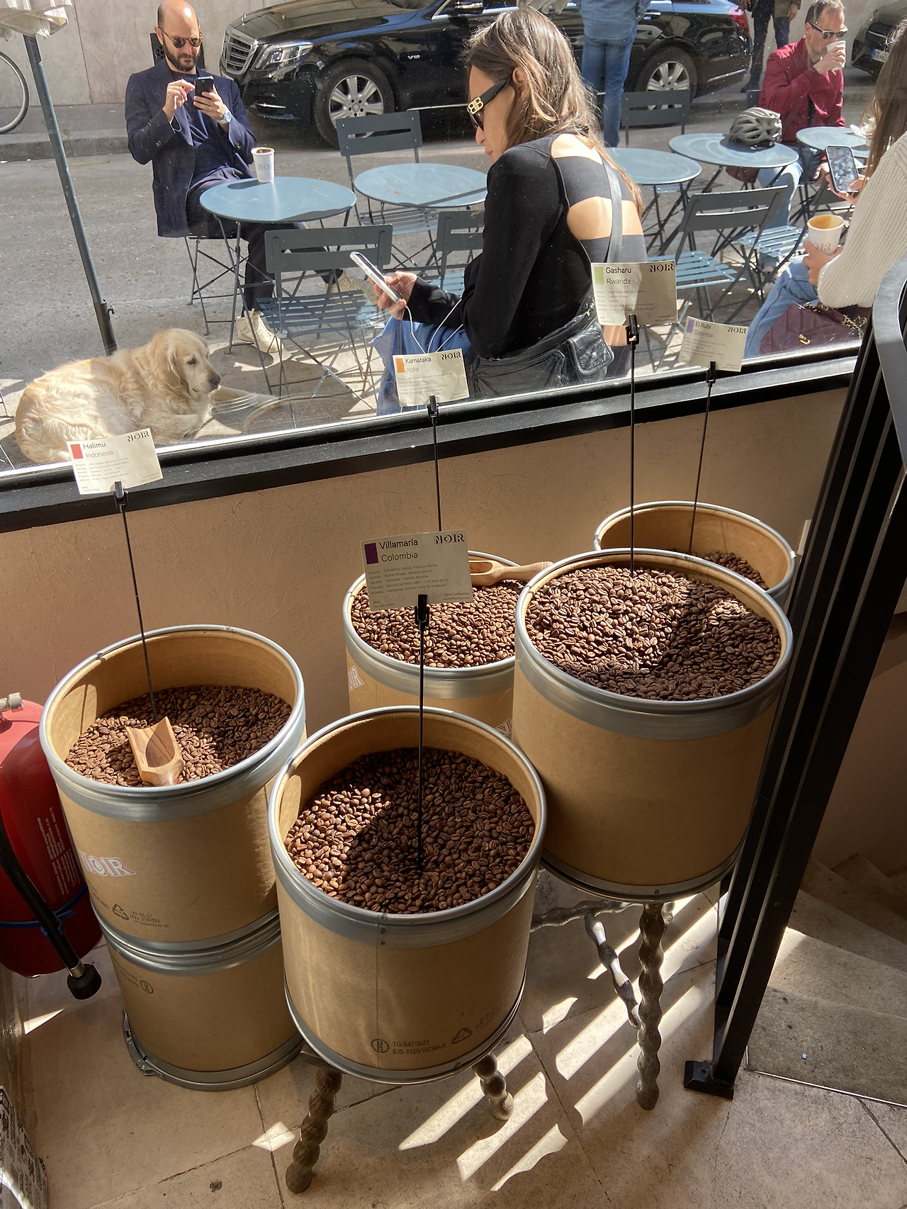 파리의 마지막 날, 꽤 유명한 프랜차이즈 카페에 들렀어요. 누아르라고 읽는 건지, 노아르라고 읽는 건지는 모르겠지만요. 파리를 떠나는 날 아침, 캐리어를 닫아놓고 혼자 커피 한잔 마시려고 나왔습니다. 앉아서 먹기에는 애매하고 시간도 없어서 테이크아웃만 하려고 했는데요. 아침 열 시 정도였는데 사람이 이렇게 많았어요. 파리는 이제 출근 시간인 걸까요, 아니면 다들 저처럼 백수인 걸까요… 어떤 영문인지는 몰라도 같은 줄에 열심히 참여했습니다. 얼마나 맛있는 커피인지 궁금해하면서요.