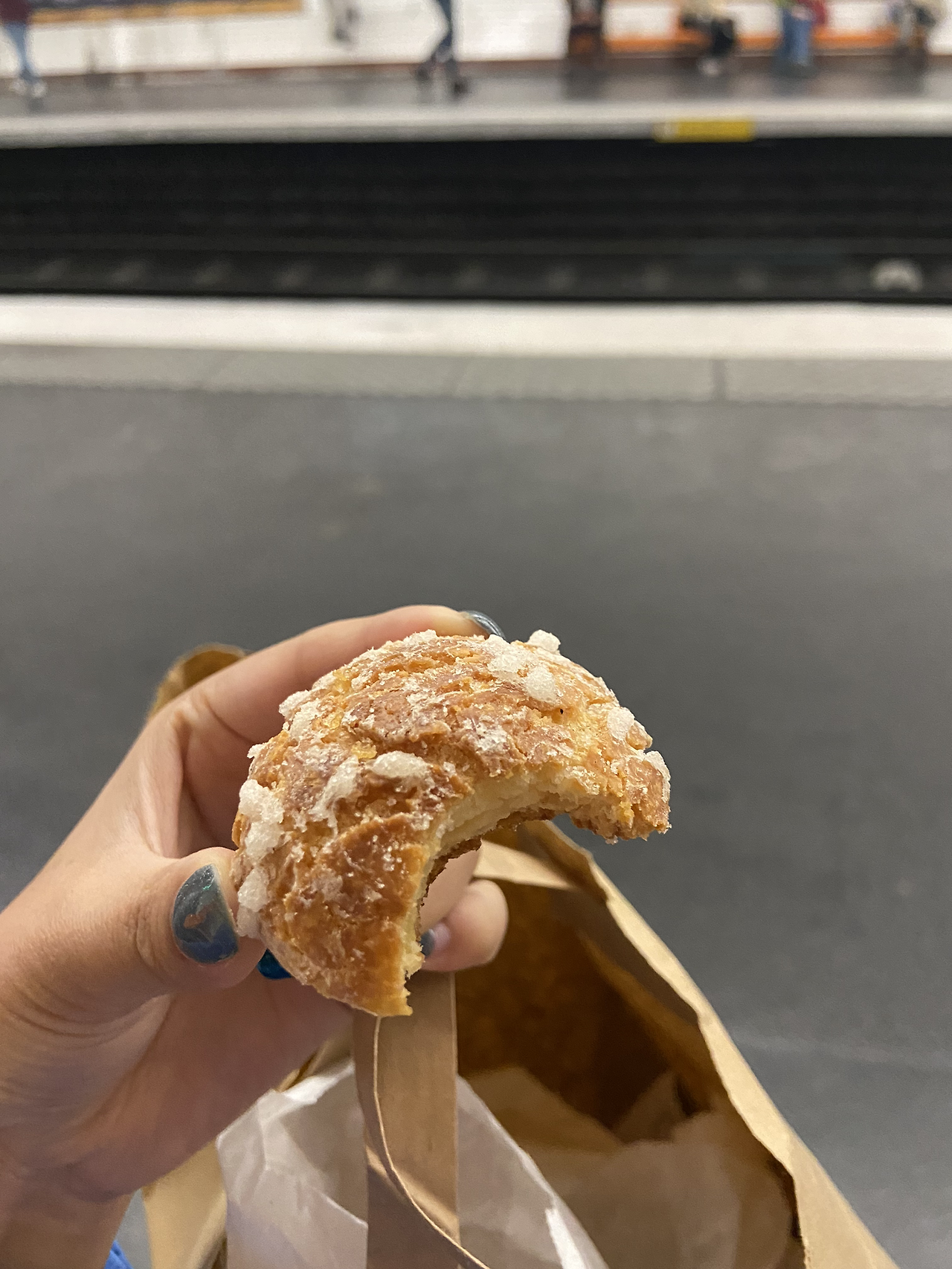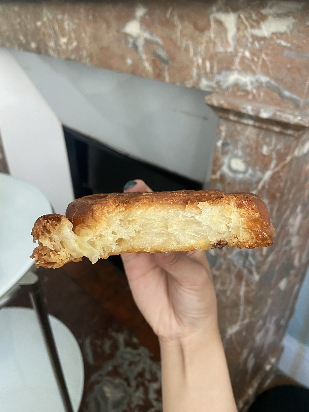 아…… 최고의 퀸아망. 저는 일단 좋으면 탄식부터 하는 것 같아요. 얼마 전에 오래된 친구들을 만났는데, 제가 음식을 먹고 진짜 좋아하는지 아닌지를 알아볼 수 있다더라고요. 좋으면 한도 끝도 없이 오바하는데, 싫으면 그냥 딱 사실 전달만 하는 거. 좋으면 일단 흐에엑- 하고 반응한다는 게 억울하면서도 사실인 것 같았어요. 이 퀸아망을 사 먹고도 그런 반응을 했던 것 같아요. 제가 상상한 빠짝하고 바삭하고 꾸덕한 퀸아망 그 자체였거든요.