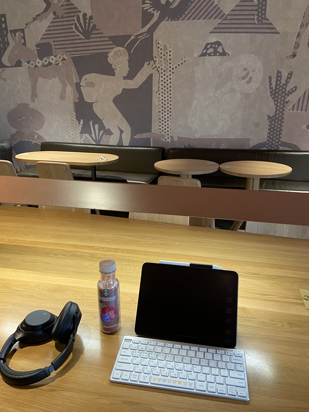 어쩐지 눈치가 보이는 브런치 카페에서 벗어나 스타벅스로 왔습니다. 스타벅스는 항상 쾌적했으니까요. 사실 이 스타벅스가 내부 자체는 거의 최고로 좋았거든요. 그런데 에어컨을 켜주지 않더라구요. 켜주긴 했는데 아-주 미약해서 손 선풍기만도 못했달까요. 막 더워지기 시작한 시점이라 난감했어요. 그래도 스타벅스인데, 에어컨을 일부러 짜게 틀어주지는 않을 것 같아서요. 잘 모르긴 하지만요. 해마 커피를 먹은 뒤라 병음료를 하나 샀는데요. 아주 단 블루베리 스무디라서 얼마 못 먹고 버렸던 기억이 나네요.