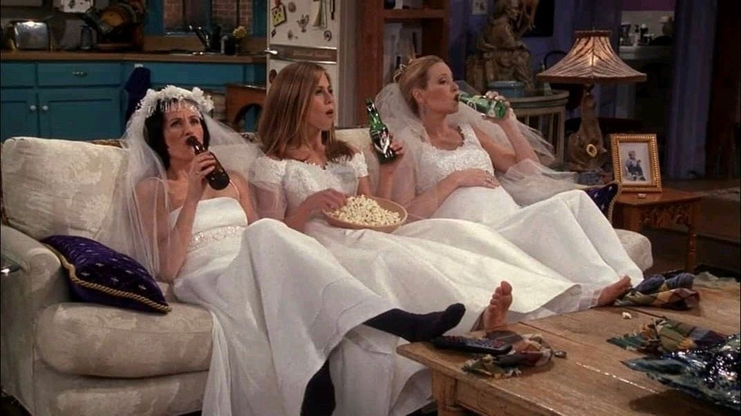 그래서인지 1화를 보고 나서는 정말 재미없다고 생각했어요. 방청객은 웃는데 저는 영문을 몰랐거든요. 그들도 웃겨서 웃는 게 아니라, 억지로 웃는 거라고 생각했어요. 웨딩드레스를 입은 레이첼이 결혼식에서 도망쳐 친구들에게 오는 것에서부터 이야기가 시작됩니다. 사실 모든 캐릭터가 생경했어요. 자조적인 챈들러, 칼 같은 모니카, 엉뚱한 피비, 욕망의 조이, 잘난 척하는 로스, 철부지인 레이첼까지. 몹시 미국적이었어요.
