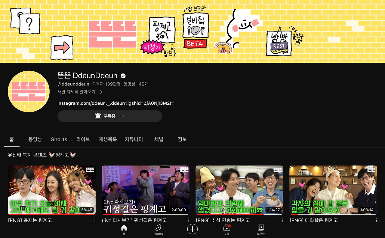 요즘은 브런치북 마감을 앞두고 있어서 핑계고를 볼 만한 여유가 없었어요… 나른하게 늘어져서 쉴 만한 시간이 없었는데요. 아마 이번주 일요일(마감)이 지나면 곧바로 소파에 누워서 핑계고를 보고 있지 않을까요… 일단 틀어놓고 언제든 딴짓을 했다가 또 언제든 돌아올 수 있는 콘텐츠이니까요. 반도파민 시리즈를 쓸 때면 마음이 나른해져서 조금 힘들었어요. 생각 없이 보던 것들에 어떤 의미가 있었는지, 무슨 마음으로 봤는지 곱씹어야 했으니까요.