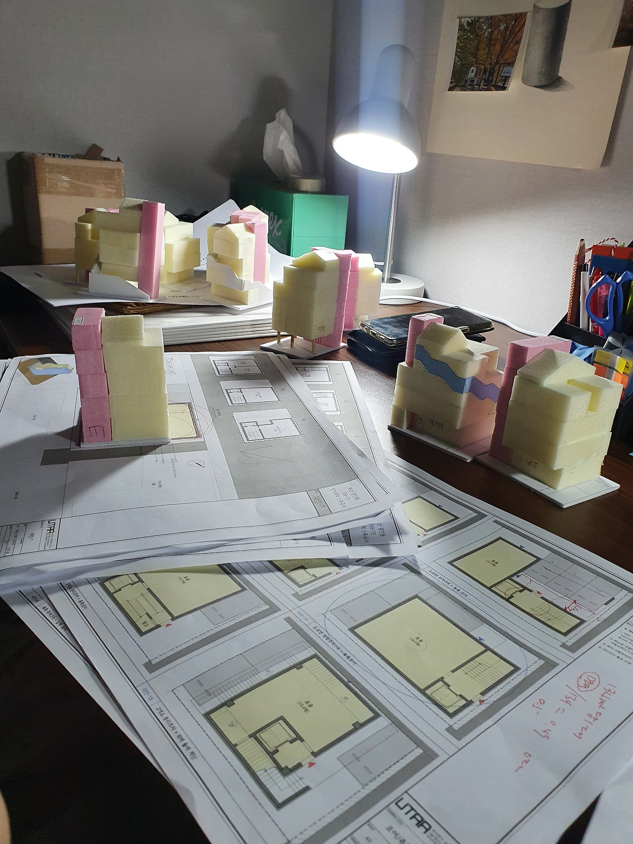그렇게 유타설계사무소의 소장님, 실장님 이렇게 두 분과의 설계가 시작되었다. 일반적으로 아파트는 주차장, 엘리베이터 위치 그리고 방의 위치나 크기가 다 정해진 채로 소비자가 구매를 한다. 하지만 건물을 설계한다는 건, 이 모든 것을 우리가 정하는 것이었다.