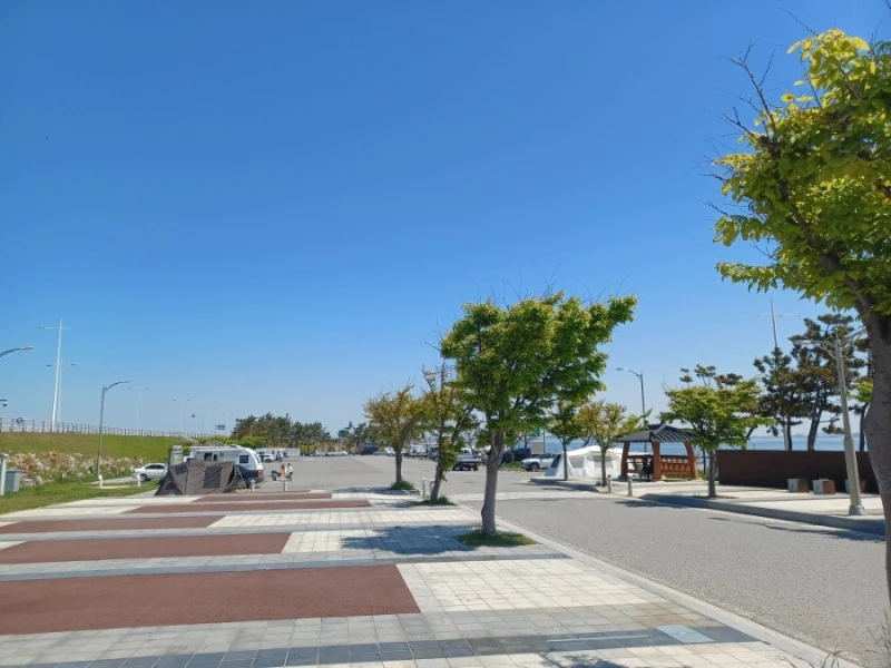 쉬지도 않고 달려온 길이기에, 방조제 초입에 마련된 쉼터에서 잠시 쉬어가기로 했습니다.