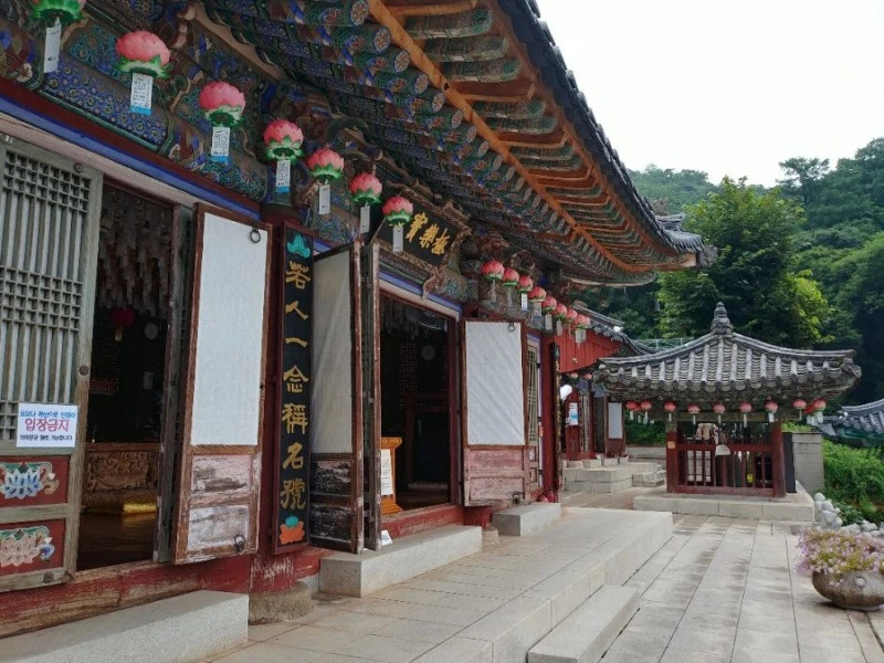 다 올라오면 비로소 사찰의 전체 모습이 눈에 들어옵니다. 우선 약수에서 물 한 모금 마시고 천천히 돌아봐야겠어요.