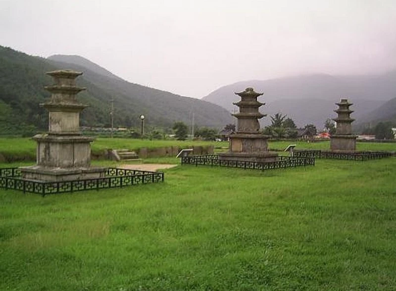 사진에서 왼쪽부터 동 3층 석탑, 중앙 3층 석탑, 서 3층 석탑