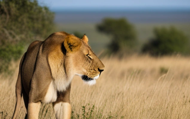 사냥에 실패, 허탈한 모습의 사자 / 출처 : 인공지능 뤼튼