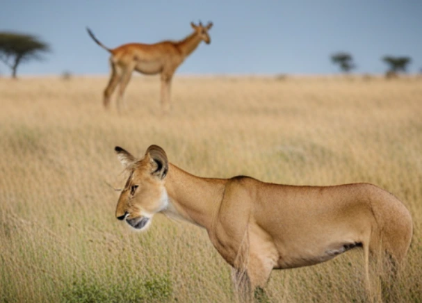 하지만 그의 생각과 다른게 사자는 사냥은 포기하고 몸을 돌려버립니다. 먹잇감도 사자와의 거리가 20미터쯤 되자, 도망을 멈추고 사자를 응시합니다.