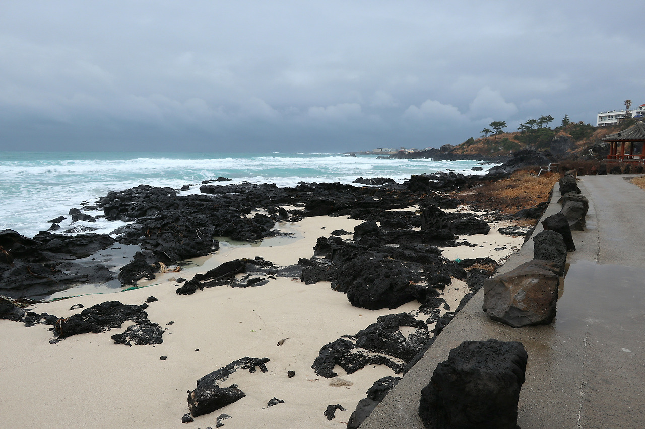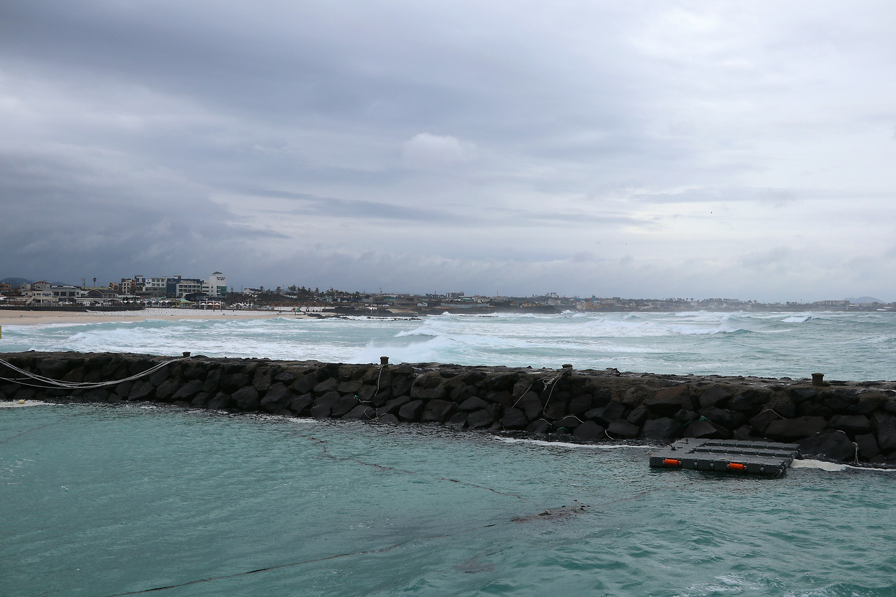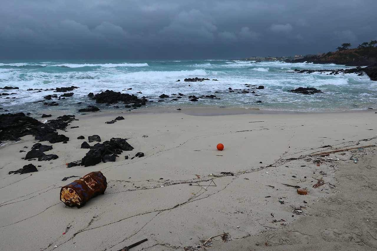 이쁜 여자는 찡그리고 화내는 얼굴도 이쁘다더니 여기 제주 바다가 그렇습니다. 바다와 파도가 아니었다면 눈길 조차 주지 않았을 폐품들조차 고운 마음으로 품어, 원래 옥빛 색이 고와서 예쁜 애월 바다는 이제는 그림이 되었습니다. 바람이 세차게 불고 비가 심하게 내려서 그 속에서 성난 파도를 일으키고 있는데도 말입니다.