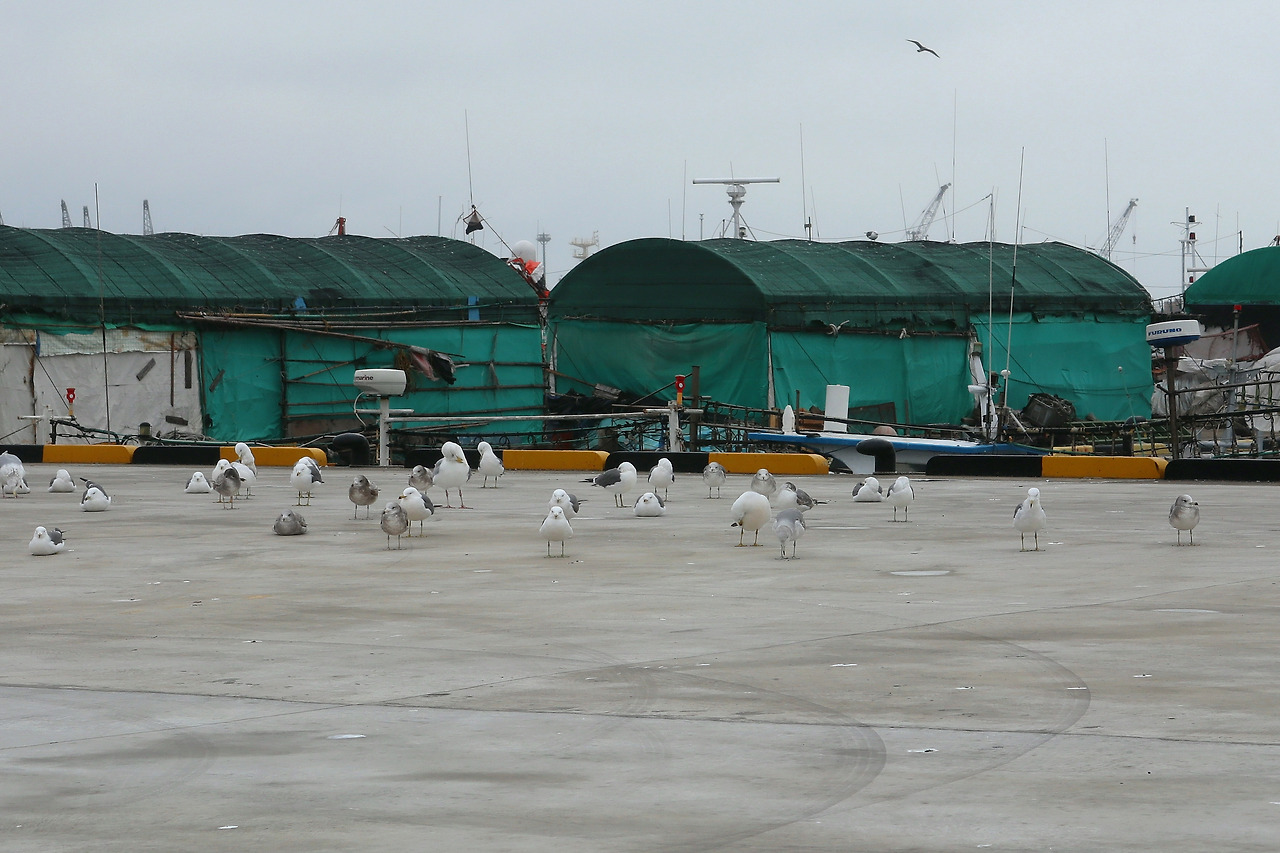 그런데 신기하게도 날개를 접고 쉬고 있는 갈매기들이 모두 한 방향을 보고 있습니다. 단 한 마리도 예외가 없습니다. 그쪽은 동쪽인데, 이유를 모르겠습니다. 아마도 저 녀석들은 아침이 될 때까지 저러고 있을 겁니다. 휴식이 필요해서 일까, 아니면 어두운 밤에 갈매기가 날아다니는 걸 본 적이 없는 것 같은데 그래서일까. 저 무리에도 우두머리가 있고 부모 형제의 관계, 친구와 연인 사이 그리고 원수지간으로 맺어져 있을까 궁금합니다.