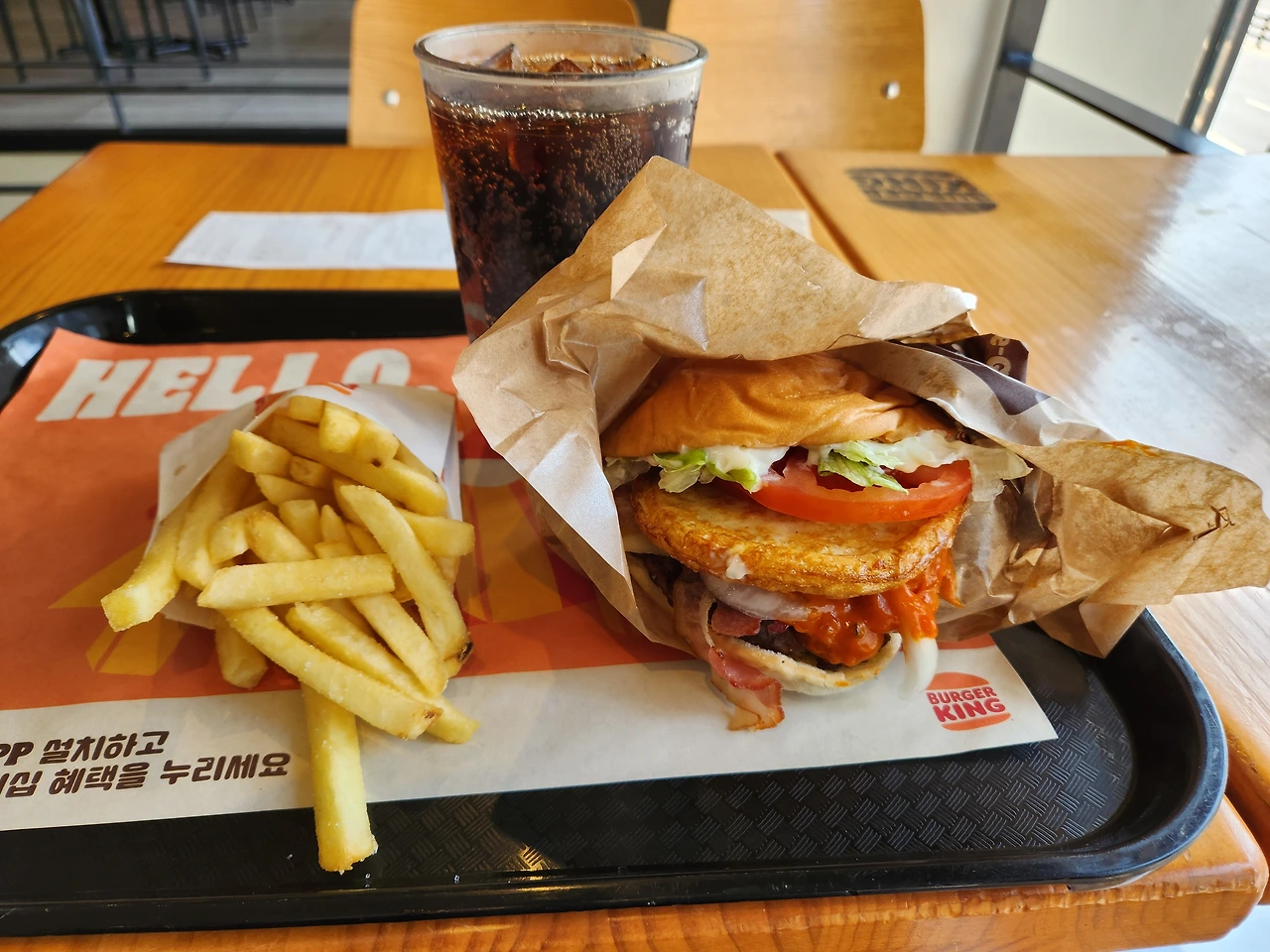 버거킹에서 접한 '오리지널스 솔티드에그'. 버터향이 나는 번 사이로 자리잡은 양상추, 토마토, 베이컨, 양파, 계란후라이, 치즈, 패티 등을 즐길 수 있는 버거. 살짝 매콤하면서도 짭쪼름한 맛이 베이스인데, 부드러운 빵과 따스한 계란 그리고 나쁘지 않은 패티가 균형을 잡아준다. 개인적으로는 온기를 머금은 후라이의 위력이 상당했다. 따스하면서도 풍부한 맛, 이른바 수제 혹은 고급 버거를 지향한 기획 의도가 확연히 느껴진다. 하지만 11,900원이라는 싱글 세트 가격이 부담스러운 것도 사실이다.