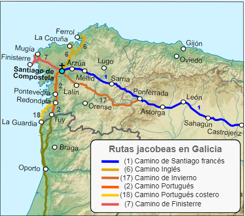지도상에서 2번 오렌지 색 코스는 #포르투갈순례길 스페인 구간입니다.