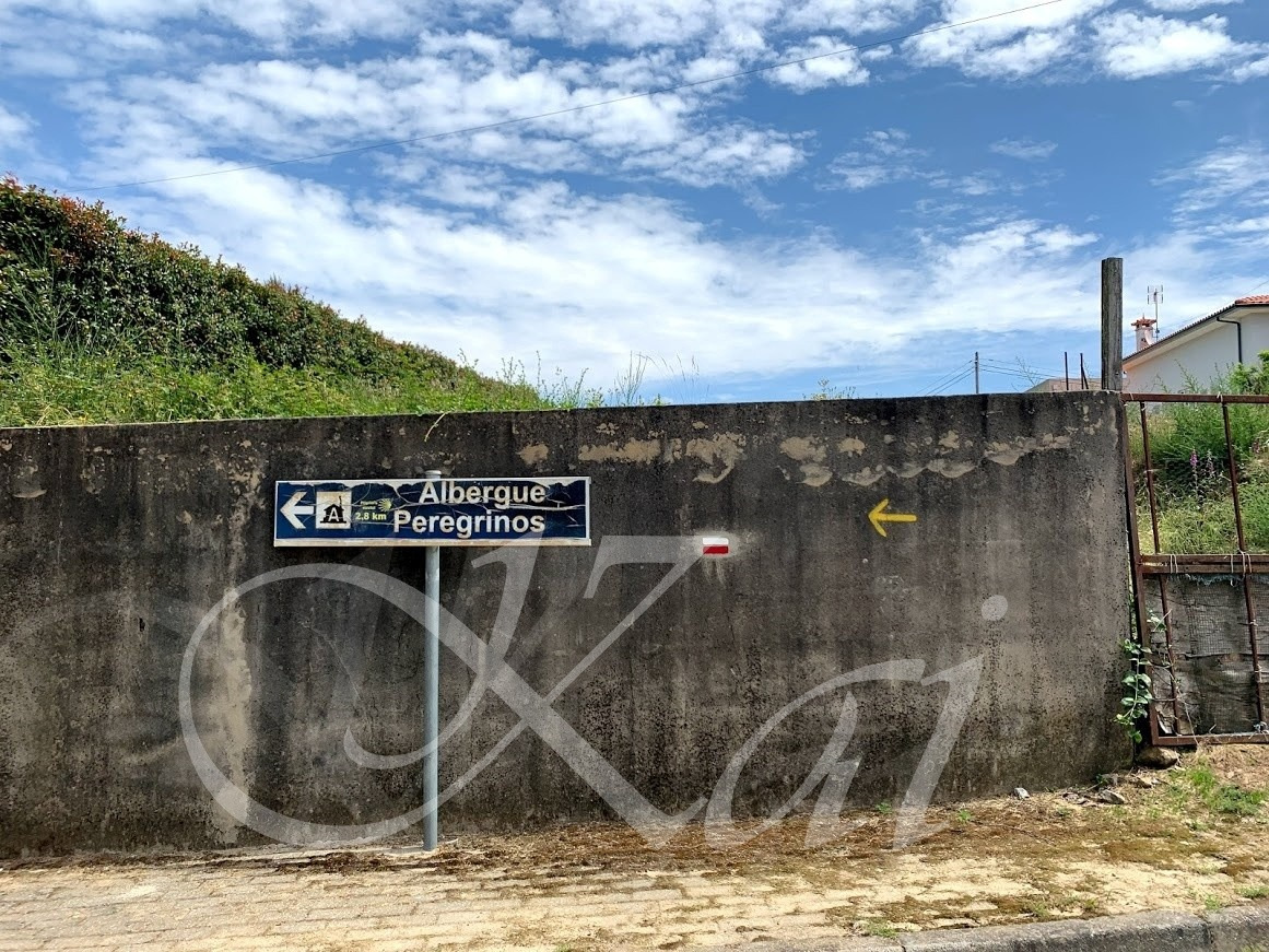 가이드북에서 제시한 것보다 훨씬 빠르네? 했더니 표지판 아래에 알베르게까지 2.8km 남았다는 수치가 뜬다. ;