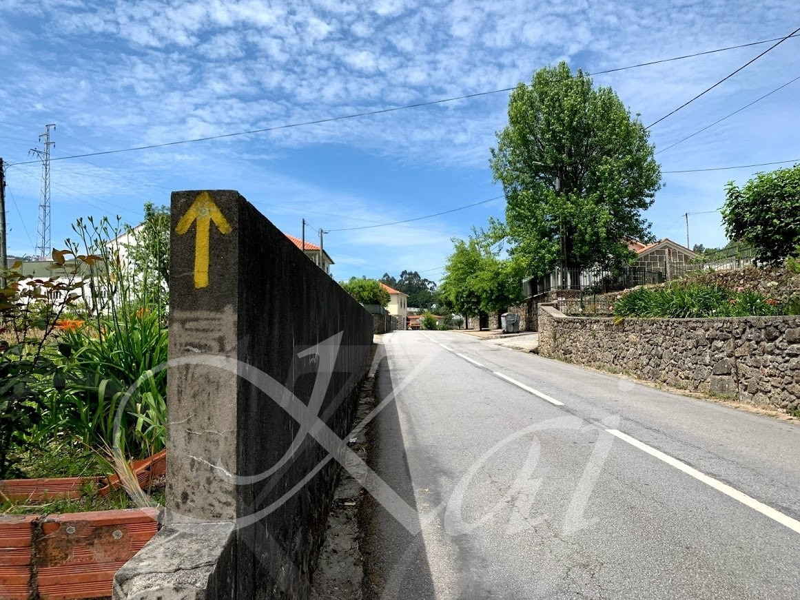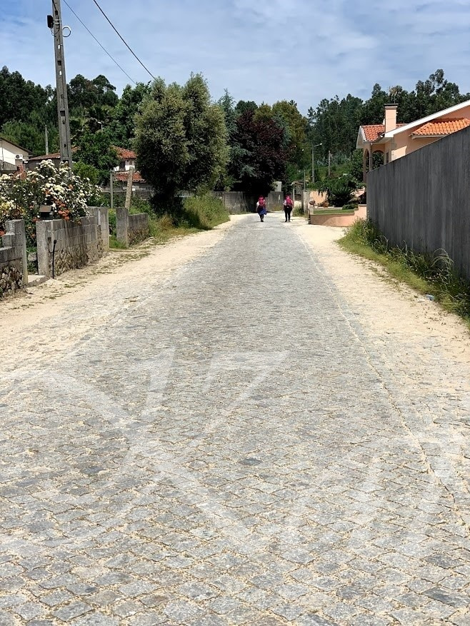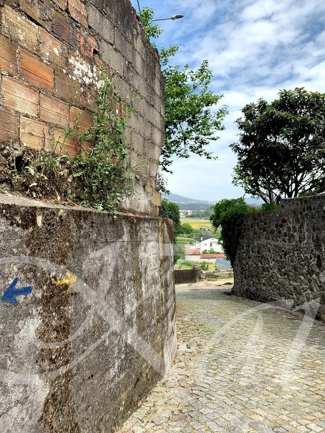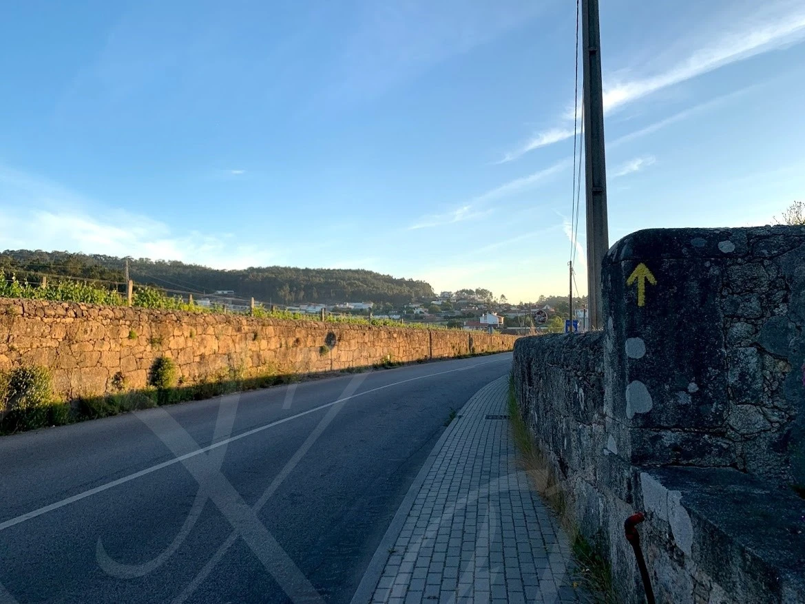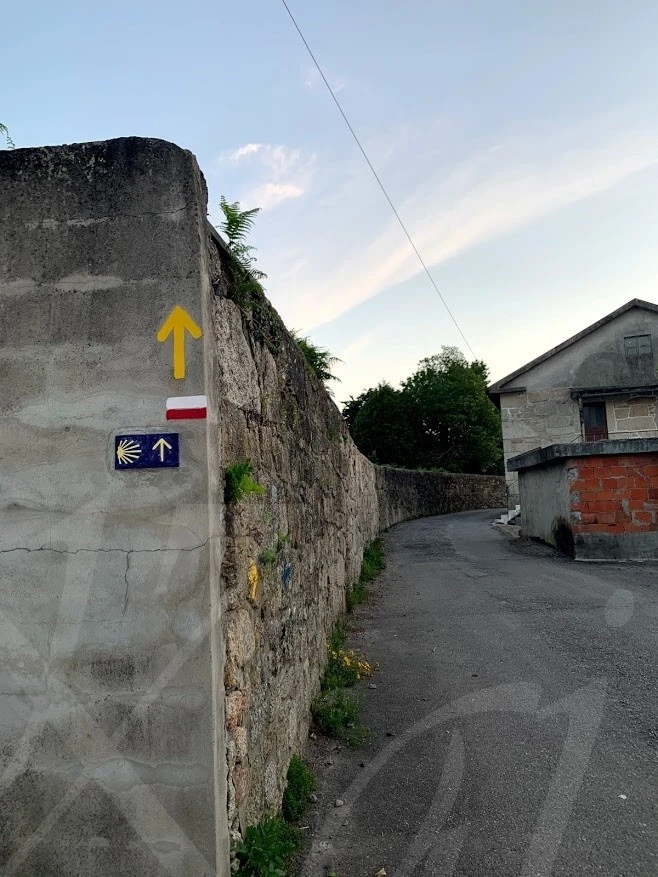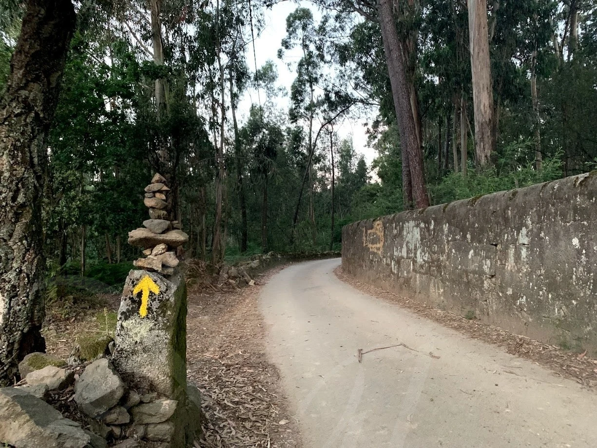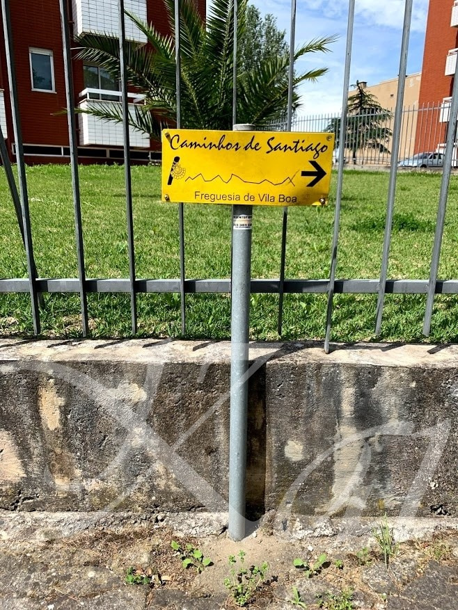 숲 외곽에 이르니 멀리 마을이 보이기 시작하는데 화살표는 오른쪽으로 향한다. #포르투갈길 뿐 아니라 다른 #까미노루트 에서도 종종 보게 되는 일. 어차피 천년 전 그 순례길과 완전히 같지는 않다. 근래 새로 구간을 정비하며 #산티아고데콤포스텔라 까지 연결은 하되, 어떤 마을에서건 마을을 두루 한바퀴 돌아지나치도록 코스가 연결된다.