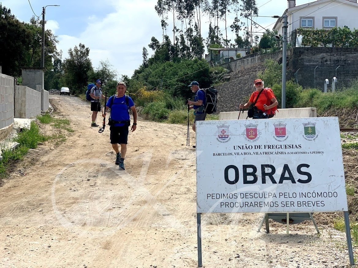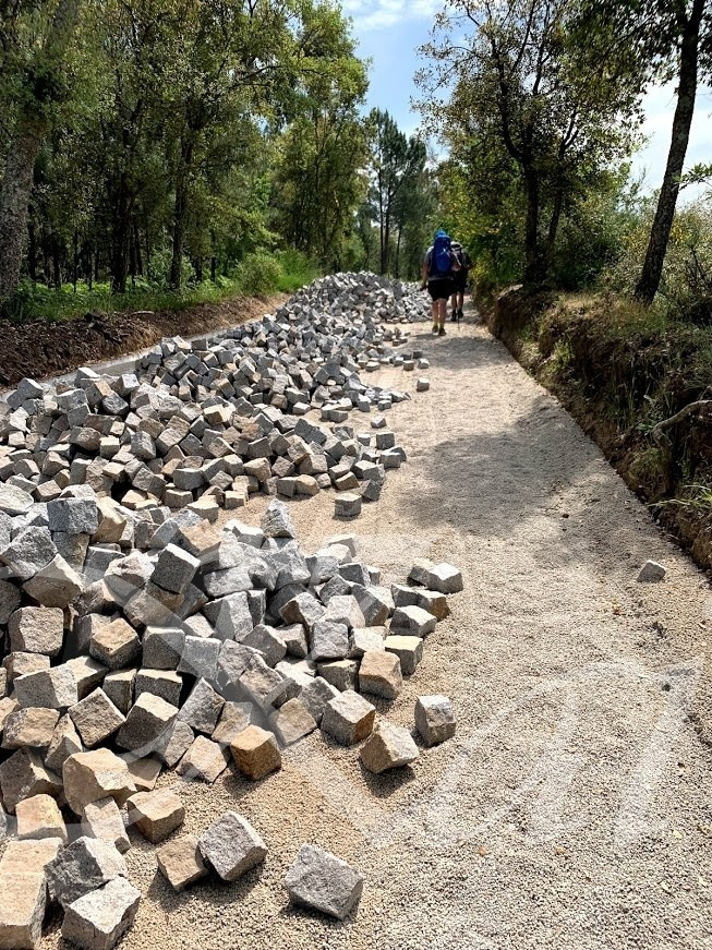 어디서부터 걸었는지 갑자기 나타난 무리. #까미노루트 공사중이었는지, 진행 방향에 대한 표기가 명확치 않고 이 사람들은 그 근처를 돌며 우왕좌왕하고 있다. 다행히 길눈은 밝은 편이어서 지도 꺼내 방향 살피고, 길 진행 방향을 보려니... 그냥 쭉 가도 될 것 같다. 자신있게 앞장서며 할배들을 불렀고, 다행히 방향이 맞다.