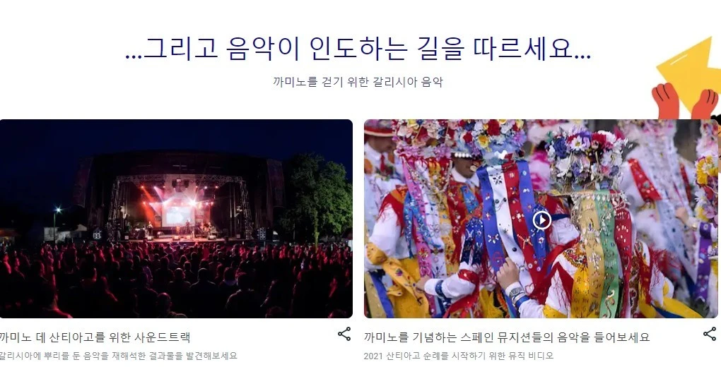 이런 분위기 속에서 스페인 현지에서는 2010년 이후, 11년 만에 돌아오는 산티아고 희년을 맞아 화려한 축제를 기획하고 있었는데 코로나로 모든 계획이 스탑됐었죠. 대신, 그간 축적한 온갖 자원을 끌어모아 루트를 더 발굴하고, 이전과는 어나더 레벨의 마케팅을 선보였는데 구글과 컬래버는 그중 대표적인 이벤트가 될 것 같아요.
