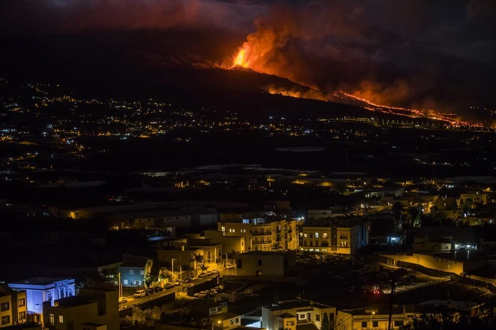 *The volcanic eruption of Cumbre Vieja, in La Palma, seen from Los Llanos on Tuesday.