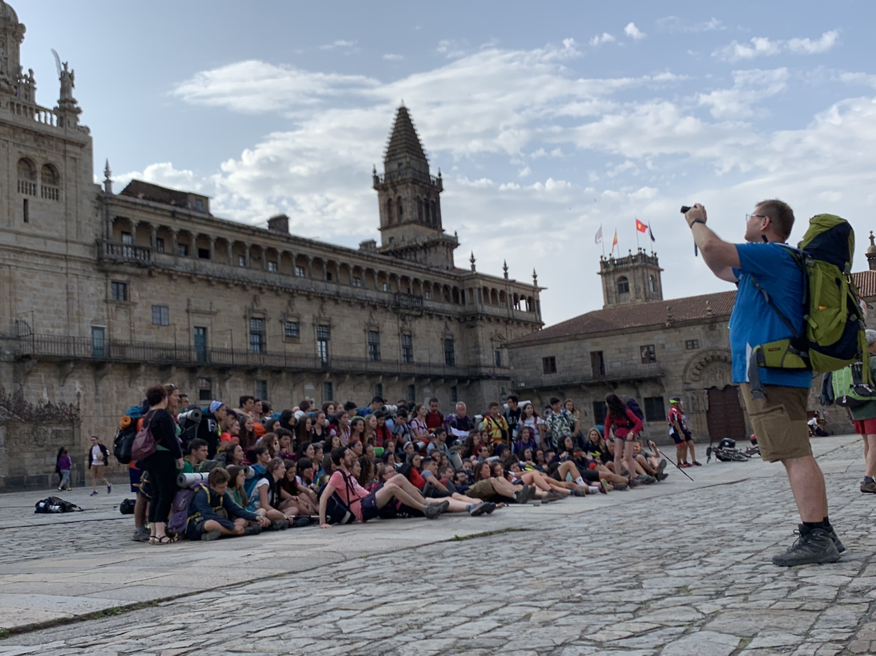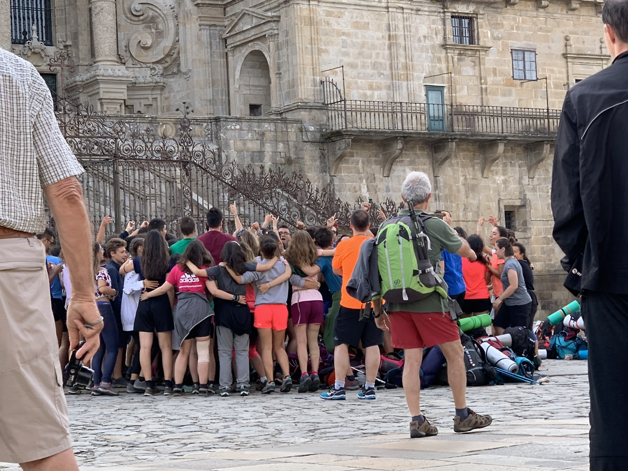 대성당 파사드 가장 윗부분에 조각된 성 야고보 상을 올려다보며 혼자 눈물 쏟는 수많은 순례자들 사이로
