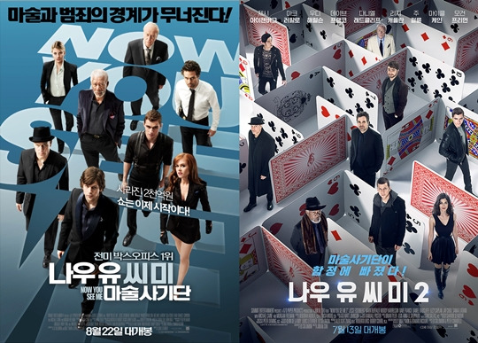 케이퍼 무비의 인기에 따라, 무언가를 훔친다는 기본 설정과 클리셰는 남겨둔 채 새로운 소재를 더해 참신하게 전개하는 케이퍼 무비가 점점 늘고 있다. <나우 유 씨 미>는 케이퍼 무비에 마술을 더한 시리즈로, 4명의 마술사가 ‘포 호스맨’이라는 이름으로 뭉쳐 은행 비자금, 해킹 칩 등을 훔치는 스토리다.