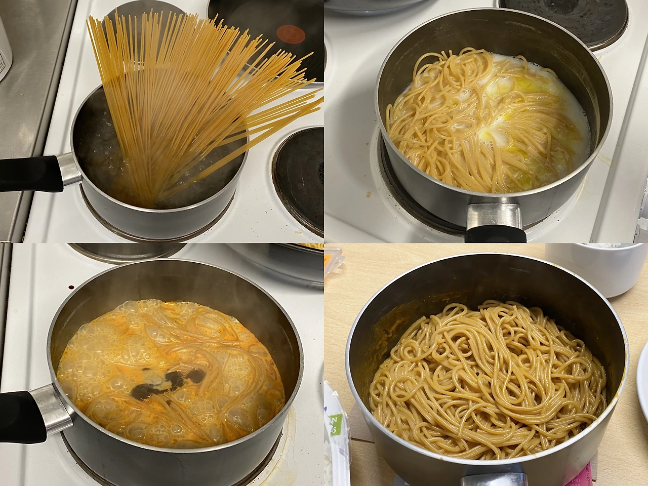 게다가 단순 크림소스가 아니라 우유와 매운맛의 조합이라, 모든 파스타면에 어울리는 건 아니다. 보통 파스타 하면 스파게티면만을 떠올리는 한국과 달리 영국에서는 다양한 종류의 파스타면을 즐겨 먹는데, 불닭 로제 파스타가 원체 맛있으니 다른 종류의 파스타면으로도 요리를 시도해 보았다. 3가지 치즈가 든 토르텔리니(안에 여러 가지 재료를 넣어 빚은 만두 같은 형태의 파스타)와 검은콩 100%만으로 만든 검은콩 면으로 만들어 먹었을 때는 꽤나 끔찍했다. 결국 일반 스파게티면으로 해 먹는 게 가장 맛있었다는 결론이다.