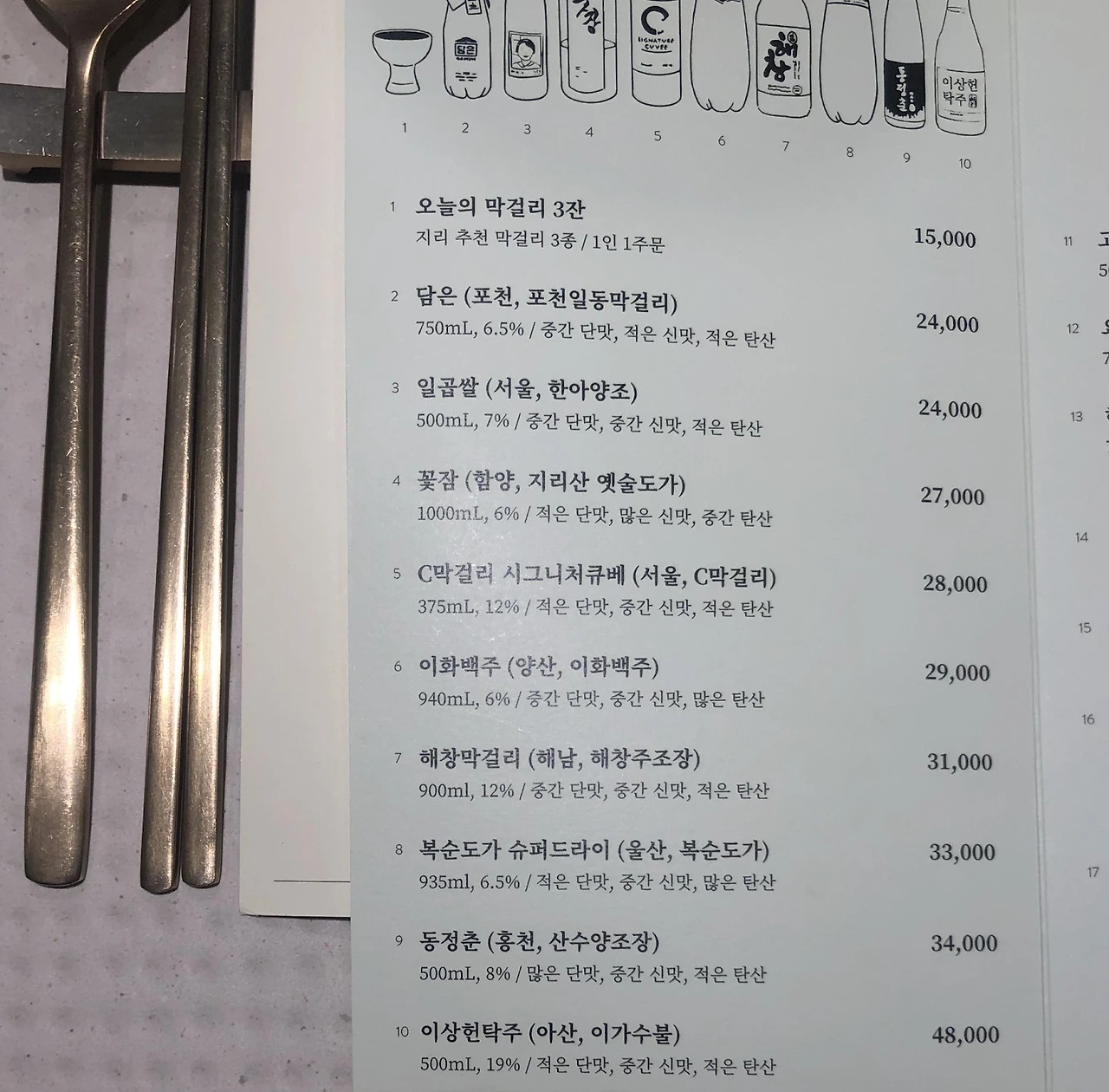 나의 다음 미션은 막걸리에 대한 오랜 편견을 깨는 것이었다. 내가 그동안 막걸리를 꺼렸던 이유는 명확했다. 막걸리의 가장 큰 특징이 걸쭉함과 탄산감인데, 이 두 가지 모두가 나에게는 부담이었다. 맥주는 탄산이 있지만 걸쭉하지 않아 청량하고, 와인은 둘 다 없으니 계속 막걸리 이외의 선택지를 골랐던 것이다. 그런 나에게 이 체험 여정을 함께한 친구가 탄산이 약한 막걸리를 소개했다.